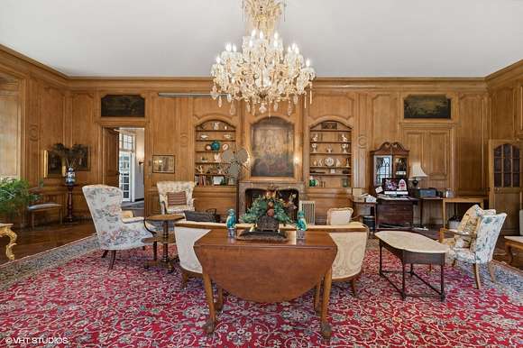 Own an exceptional piece of Chicago history. Once the centerpiece of a 480 acre estate known as Mill Road Farm, this magnificent home was built in 1926 for Albert D. Lasker, the father of American advertising, and designed by the renown Chicago architect, David Adler. This 17th c., French Renaissance Revival manor house contains 25,000 SF and is set on 7.52 acres of land located on the west side of Lake Forest. The interior of the home offers old world craftsmanship, rare finishes of an exceptional high quality such as the parquet de Versailles flooring plus antique paneling, and are all original except for modern amenities necessary for modern living. The home features 52 rooms, 11 full bathrooms, 4 half bathrooms, 13 fireplaces and an independent five car garage. Main level offers a second Primary Suite. there are at least 11 bedrooms, but we did not list them all.