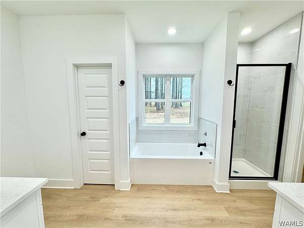 This brand new build on the Northside will be move-in ready before we know it! Situated on a beautiful 1.5-acre homesite, this stunning new construction home combines luxury finishes with peaceful living only minutes from town! This split floor plan separates three bedrooms on one side of the large open concept living room, kitchen, and dining room, while the primary suite sits on the opposite side of the home. The primary suite highlights two separate vanities, a gorgeous tile shower, soaking tub, and massive walk-in closet with convenient access to the laundry room and drop station. Retreat to the covered back porch to capitalize on peaceful living with views of your wooded Northside acreage! Ready to explore all that Timberwood has to offer? Call me today to take your tour! Estimated completion mid February.