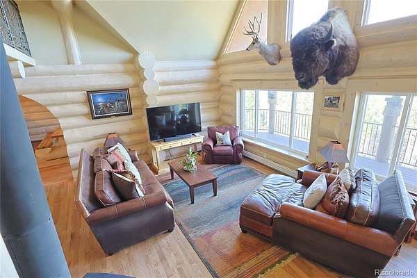 Discover the perfect blend of rustic elegance and modern comfort in this Authentic Log Home perched high in the prestigious private gated community of Woodmoor Mountain. Surrounded by towering pines and nature’s beauty, This Home BOASTS ABSOLUTELY EXTRAORDINARY PANORAMIC VIEWS — the kind that stretch for miles and truly take your breath away. This true mountain home provides 5,292 sq. ft., 4 bedrooms, 4 baths, and 4 acres, offering the perfect blend of rustic charm and modern luxury. Perched on a beautifully wooded lot with extensive, unobstructed views, this home delivers a serene retreat just minutes from I-25 corridor, Castle Rock approx. 13 min. and Colorado Springs approx. 20 min.