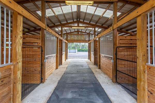 This serene equestrian farm has an amazing location just across Southern Blvd on a paved road and is only about a 10 minute drive to WEF. The house has its own private gate & driveway, and includes 3bdr/2bath with an additional 4th bedroom added in the garage (can easily be converted back). Fully furnished with a fenced in backyard for your 4 legged friends! There is one 6-stall barn and one 10-stall barn, an all-weather 150 x 120 ft GGT arena (bigger arena at neighbors might be available for an additional cost), a 60' round pen and 5 grass paddocks. Treadmill shed, 5 wash racks, two RV hook-ups, separate storage for hay & shavings and plenty of space for parking. The property is located just across the street from Loxahatchee Groves Park which has great walking and riding trails! Also Seasonally offered w/4-month term at $100k, Barn Only $80K. Or Per Stall with 6-Stall Minimum for $5200. For a seasonal rental, payment upfront is required, for annual first, last and security deposit.