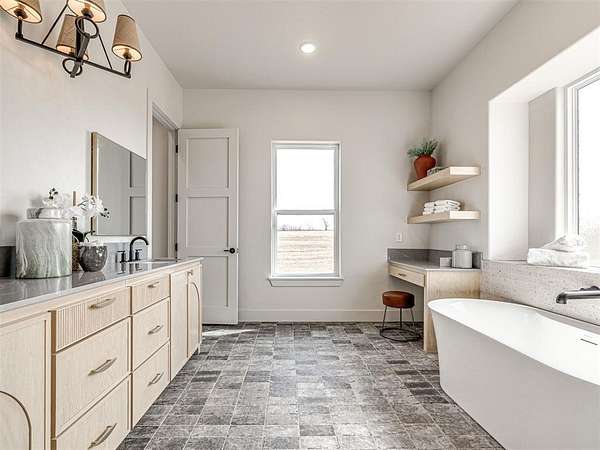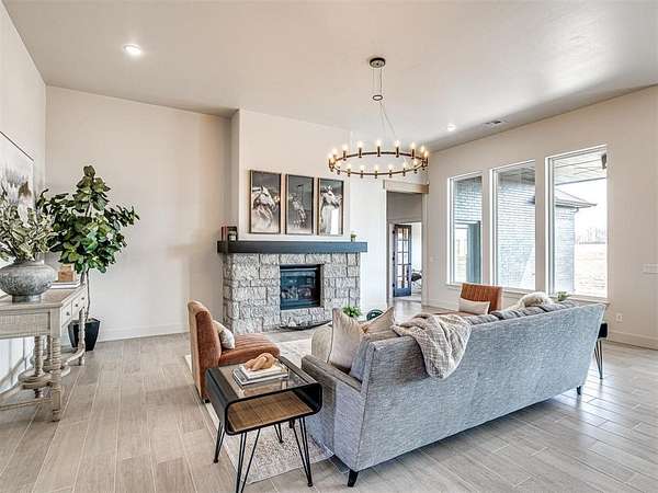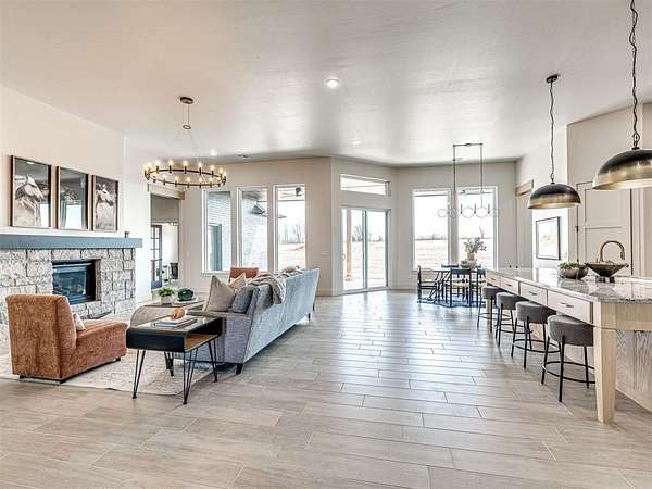 $25,000.00 BUILDER INCENTIVE SPECIAL FOR APRIL! Modern Hill Country Luxury on 1.5+ Acres - Summit Ranch, Goldsby This residence, situated in southwest Norman's Summit Ranch-an exclusive luxury acreage community-exemplifies contemporary design and rural elegance. The Breckenridge floor plan encompasses 3,754 sq. ft., with four bedrooms and four and a half bathrooms, combining modern amenities with Oklahoma countryside appeal. Positioned on a 1.5-acre lot, the home offers expansive western views and an open, light-filled layout conducive to hosting and entertaining. The kitchen features a substantial island, Butler's Pantry, Frigidaire Pro double refrigerator, smart double ovens, five-burner gas cooktop, and a spacious walk-in pantry, providing an ideal environment for culinary pursuits. Additional functional spaces include a dedicated home office/study and a generous mudroom, designed to accommodate diverse lifestyle requirements. The primary suite is appointed with a spa-like bathroom and an oversized closet, offering privacy apart from the principal living areas. Interiors have been professionally curated and staged by Studio Tatum Design, with finishes selected to complement the Modern Hill Country aesthetic. Constructed in accordance with the National Green Building Standard (NGBS), this property delivers approximately 35-40% energy savings and superior comfort via foam encapsulation, a Navien tankless water heater, and Low-E Argon windows. Located within the Washington School District and just nine miles from the University of Oklahoma, Summit Ranch provides an exceptional combination of luxury, energy efficiency, and spacious surroundings.