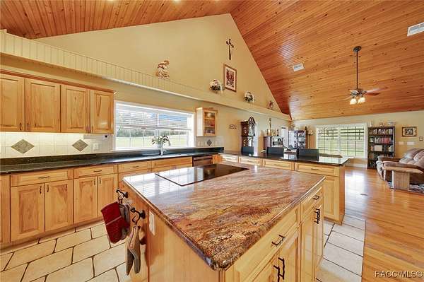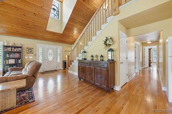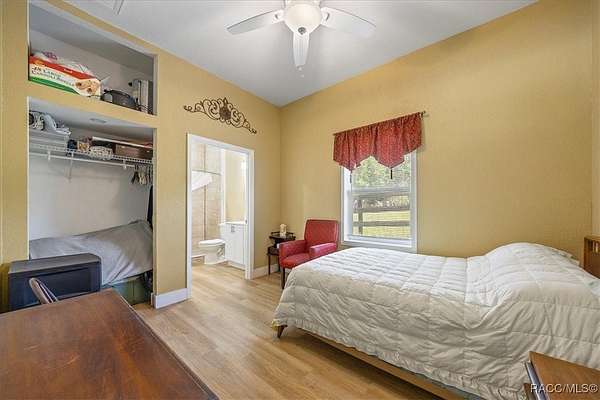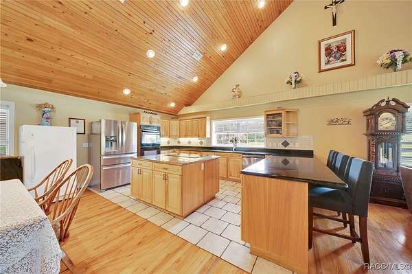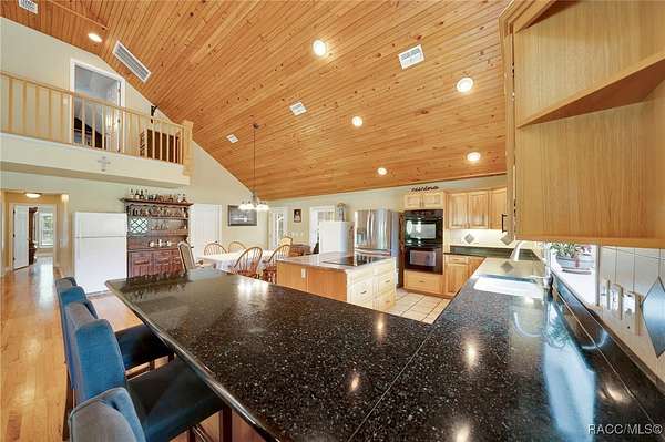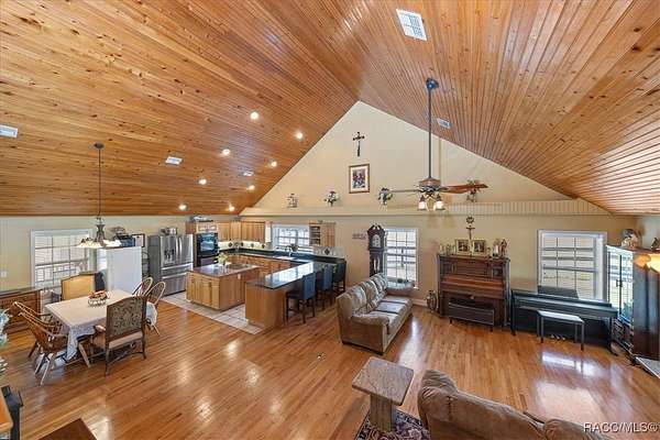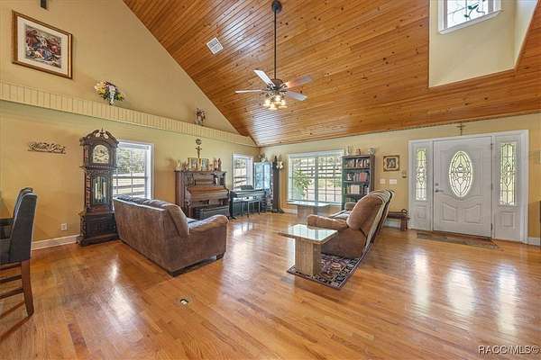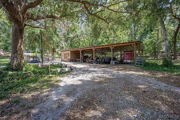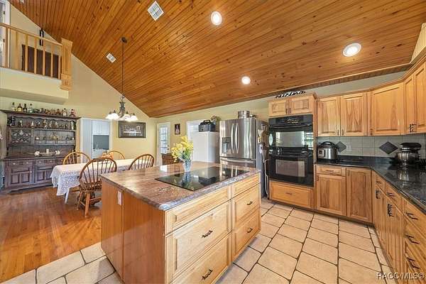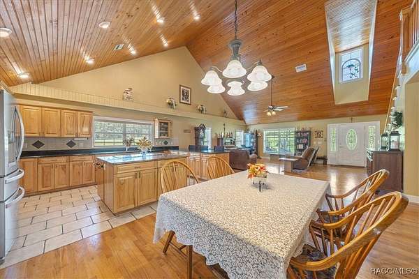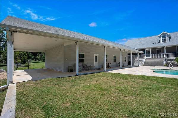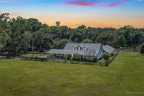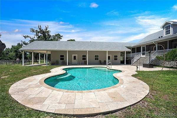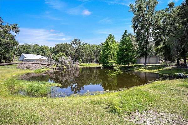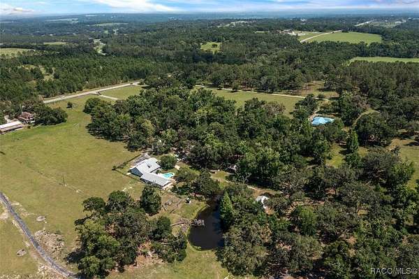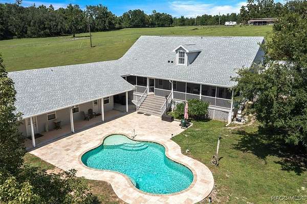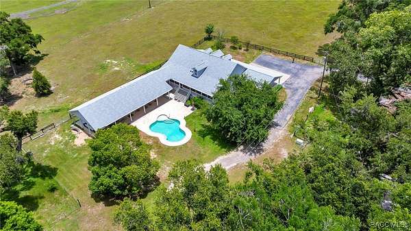 Rustic Luxury on 16.6 Acres - Private Homestead Retreat in Spring Lake, Brooksville. Nestled in the scenic hills of Spring Lake, this exceptional Brooksville estate blends timeless rustic charm with modern comfort. Featuring a spring-fed creek, a half-acre stocked pond, and sprawling, lush pastures, this private homestead offers the serenity and seclusion ideal for those craving a peaceful, nature-filled lifestyle. The main residence is a beautifully crafted 3-bedroom, 3-bath home that exudes warmth and attention to detail. Vaulted wood ceilings and solid oak floors create a cozy yet elegant atmosphere. The open-concept kitchen stands ready for entertaining with granite countertops, dual built-in ovens, a spacious island cooktop, and a breakfast bar. The primary suite on the main level includes his-and-hers walk-in closets and a spa-inspired en suite bath with dual vanities and a spacious two-person shower. Upstairs, a private loft suite offers a full bath, walk-in closet, bonus space, and a dedicated thermostat for comfort. A third bedroom and guest bath round out the main living space. The new (2022) detached dual guest additions are each one-bedroom, one-bath featuring their own entrance, eat-in kitchens, and full bathrooms, shared indoor laundry space and an attached carport, making these ideal for multigenerational living. Outdoor living shines with a custom saltwater pool and travertine marble deck. The home is also equipped with a whole-house generator, a 50 AMP RV hookup with water & septic. NEW ROOF April 2025. New septic drain field & septic cleanout 2024. Fully fenced and livestock-ready. Multiple paddocks equipped with water access. The property includes two wells 250' deep, a 26 x 40 shop with a car lift, a 23 x 30 workshop, a 2-stall horse barn with tack and feed room, a 30 x 30 hay barn, and a 4-bay equipment shed. The entire estate is enclosed by double perimeter fencing. Whether you're looking to farm, or simply enjoy a slower pace of life surrounded by nature, this exceptional property in sought-after Spring Lake delivers it all.