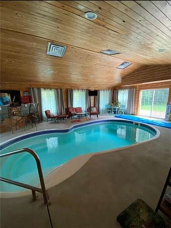 Tucked away on nearly 14 acres of beautifully wooded land and a private lake, this spacious 4,500-square-foot home offers the perfect blend of comfort, character, and natural beauty. With 4+ bedrooms and 4 bathrooms, there's plenty of room for family, friends, and the moments that matter most. Outside, the property features a charming mix of apple, plum, and cherry trees--perfect for enjoying fresh fruit straight from your own land. Inside, you'll find gorgeous woodwork throughout, adding warmth and personality to every corner of the home. The open living areas invite conversation and relaxation, whether you're gathered around the fireplace or enjoying a quiet morning coffee with views of the lake. A true highlight of this property is the heated indoor pool--ideal for year-round enjoyment and a wonderful way to escape the winter months. Whether you're dreaming of a forever home or a tranquil weekend escape, this one-of-a-kind retreat welcomes you in.