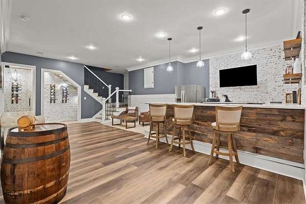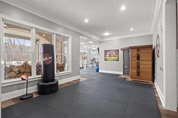 - Beamed Ceilings, Crown Molding, Double Vanity, Sauna, Vaulted Ceiling(s), Walk-In Closet(s), Wet Bar