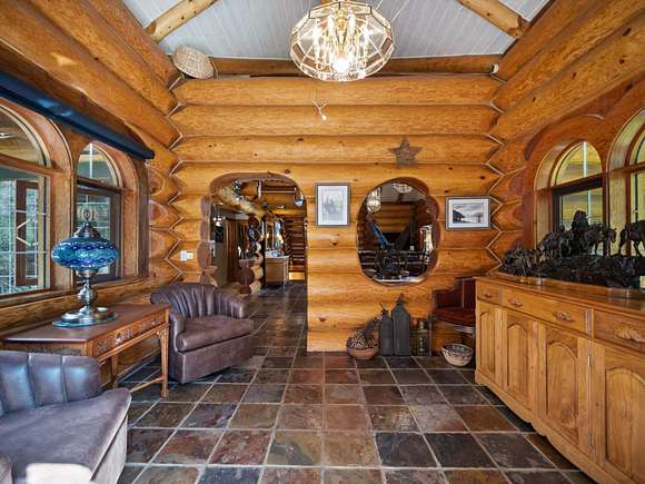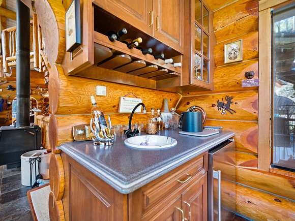 Crafted by the esteemed "Rasmussen Log Homes," the cabin showcases timeless elegance and authenticity with hand-hewn logs that create a warm and inviting ambiance. Custom details adorn every corner of the home, adding to its aesthetic appeal and functional design.