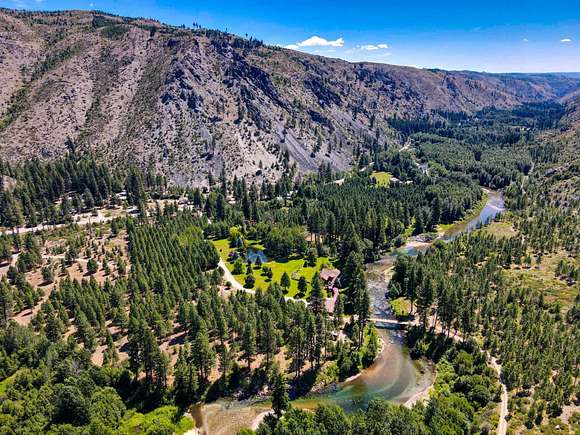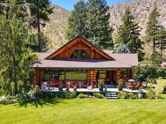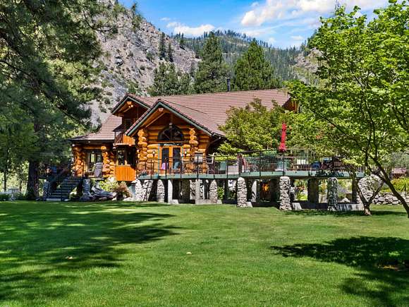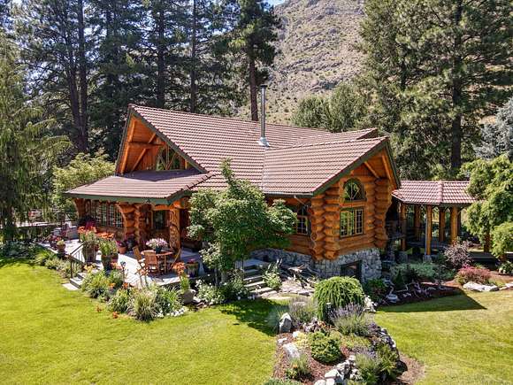 Welcome to the captivating Stormy Lodge, nestled on a sprawling 14+- acre retreat along the serene Entiat River. This remarkable custom log cabin is a seamless fusion of rustic charm and contemporary luxury, offering an idyllic escape from the hustle and bustle of city life. With its breathtaking surroundings, thoughtful custom touches, complete privacy, and stunning landscaping, this property is a nature lover's paradise.