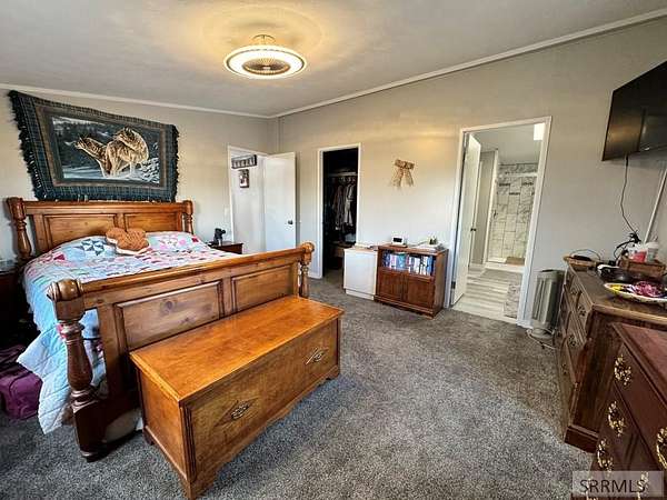 Est $4,055/moPeaceful 74 acres with water rights in a beautiful rural mountain setting. Land has been used for growing irrigated alfalfa and grain. Fenced pasture with hand lines, three grain silos, Year-round access, just 35 miles from town. Custom craftsmanship throughout all of the creatively designed 4 bedroom, 2 bathroom home. Boasting vaulted ceilings, charming kitchen, 2 family rooms, endless storage, fruit room and large shop. Raise your own crops, livestock, poultry, and garden while taking in the beauty and wildlife that encompasses you in every direction. Enjoy the clean mountain air and the fresh pure water from your own private well. Jackson hole is 3 hours away and Salt Lake is 2 1/2 hours away