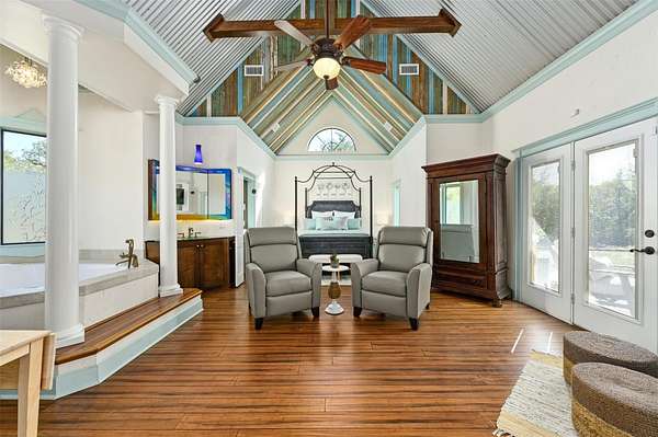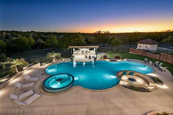 This luxe estate will be sold at Luxury AUCTION Without Reserve on May 21, 2026! List price for REFERENCE ONLY. Offered in co-op. with Platinum Luxury Auctions. Inquire for details. Resort Lifestyle in the Gorgeous Texas Hill Country! Tucked away along the banks of Mustang Creek just outside the boutique town of Salado, TX is a polished diamond, just waiting to be discovered. This pool and outdoor entertaining complex beats most resorts with its amazing outdoor kitchen, media capabilities, swim-up bar, fire pit, and spa. Entertain like royalty! And your guests can stay the night in one of TWO guest houses! Inside the residence, you'll find elegance in every corner, as this refreshed home offers a stellar kitchen, wine cellar, aerobics studio, theater room, dual offices, and an upstairs entertaining lounge and game room space perfect for watching sports, or playing poker or billiards. And as you gaze out the windows or off the sprawling porches, you'll enjoy the privacy of tree top views and the endless Texas skies. It's a one of a kind with an easy pastoral commute to Scott & White, Salado, Georgetown, and more. It's a hill country getaway that you won't want to leave. Floor plans for residence and guest houses in the virtual tour.
