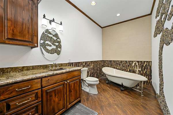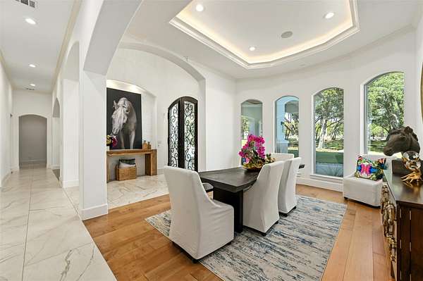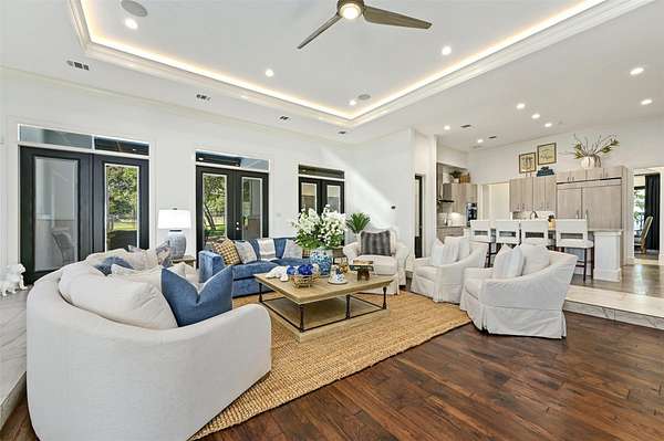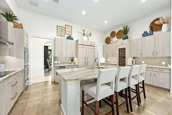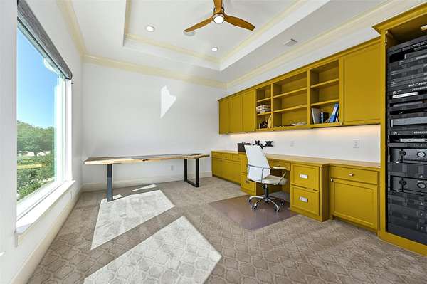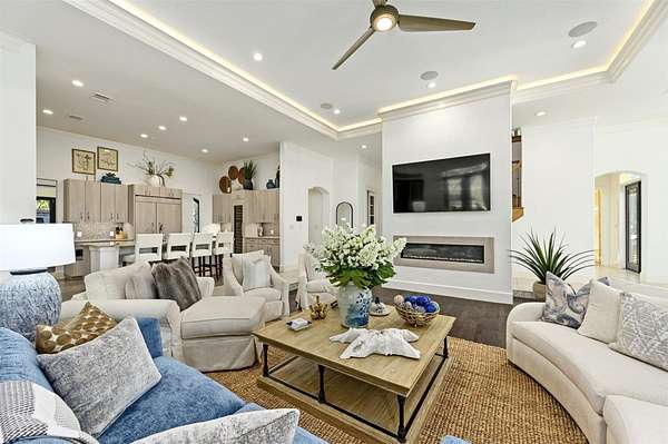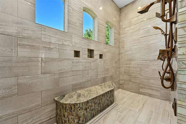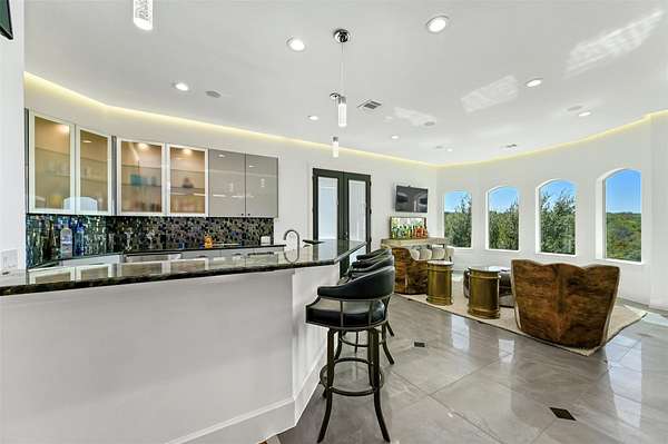 - Bar, Bookcases, Breakfast Bar, Built-In Features, Cathedral Ceiling(s), Ceiling Fan(s), Ceiling-High, Ceiling-Vaulted, Chandelier, Coffered Ceiling(s), Crown Molding, Double Vanity, Dry Bar, Eat-In Kitchen, Entrance Foyer, Granite Counters, High Speed Internet, In-Law Floorplan, Interior Steps, Kitchen Island, Low Flow Plumbing Fixtures, Multiple Dining Areas, Multiple Living Areas, Natural Woodwork, Open Floorplan, Pantry, Primary Bedroom On Main, Recessed Lighting, Smart Home, Smart Thermostat, Soaking Tub, Sound System, Stone Counters, Walk-In Closet(s), Water Sense Fixture(s), Wet Bar, Wired For Data, Wired For Sound
