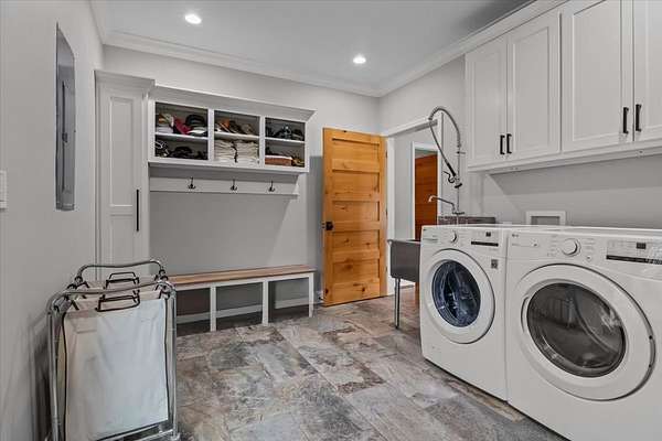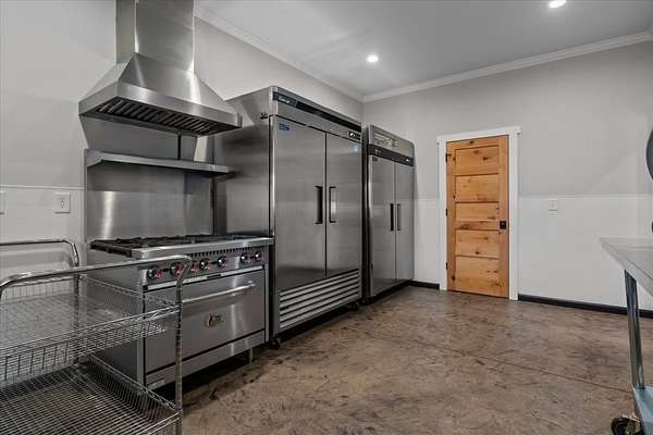 The main kitchen is designed for both everyday living and entertaining, featuring custom cabinetry, premium countertops, top-of-the-line appliances, and a dedicated walk-in pantry. Just off the dining area, a second full kitchen—also with its own pantry—adds exceptional flexibility for hosting, multi-generational living, or extended stays.