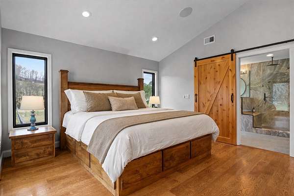 The land is equally impressive—offering multiple fenced pastures, a spring-fed creek, a livestock barn, hay barn, workshop, and established trail systems, making it ideal for farming, recreation, or a private retreat.