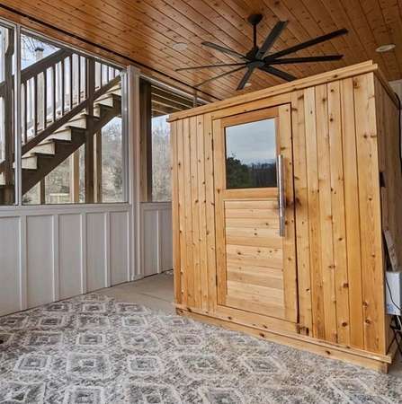 Inside, wide-plank hardwood flooring, expansive living areas, and a luxurious primary suite create a warm yet refined feel. Dual laundry rooms and thoughtful upgrades throughout add convenience, while features such as a wood stove, built-in sound system, screened porches, and an outdoor shower enhance everyday living.