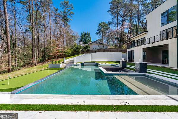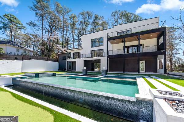Experience the kind of luxury that turns heads and stops conversations the moment you arrive. Moores Mill is not just a home, it is a statement, a newly built architectural showpiece set on 2.43 ultra private acres and crafted for the buyer who wants unforgettable, jaw dropping, magazine cover worthy living. From the dramatic floating staircase with underlit risers that greets you like a modern art installation to the grand primary suite that feels like your own private spa sanctuary, every inch of this estate is designed to impress at the highest level. The chef's kitchen is built for culinary brilliance, the executive office commands respect, and the private wellness retreat with a glass enclosed sauna and steam bath delivers a five star resort experience without ever leaving home. Upstairs offers four spacious bedrooms, five luxe bathrooms, and a chic teen study that feels straight out of a design editorial. The lower level is pure entertainment indulgence with a full cinematic theater, private gym, and an in home salon, all connected by a designer elevator wrapped in warm wood slat detailing that opens into an LED lit lobby like a boutique hotel. Even the garage makes a statement with black tinted aluminum doors, epoxy floors, and matte black cabinetry worthy of a supercar collection. Outside, ten hotel caliber bathrooms and a heated saltwater pool and jacuzzi encased in seamless plexiglass create a resort environment that is simply unmatched. This is modern luxury without limits, crafted for the buyer who wants it all and expects nothing less than extraordinary.