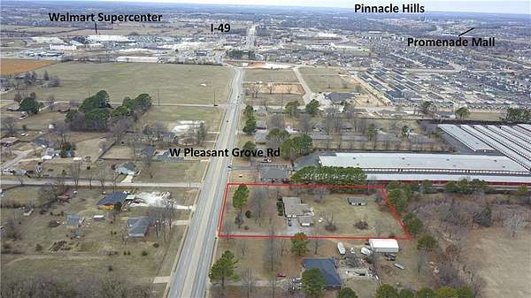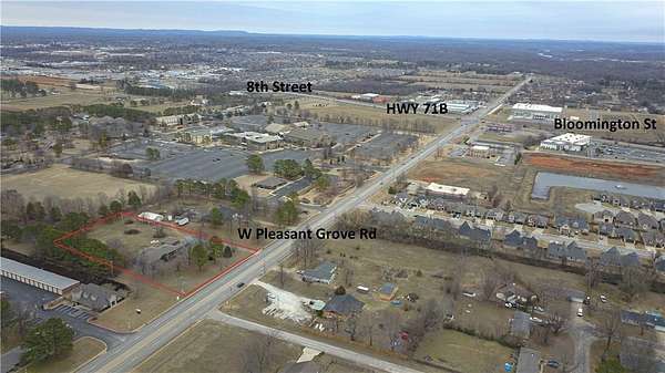 Est $3,193/moClose to 2 acres of prime frontage on the busy Pleasant Grove Rd. 4 minutes to I-49 and Walmart supercenter, 2 mins from HWY 71B. Property includes 2,376 sq ft house with attached garage, detached 2 car garage and Detached 2 car shop, would make a perfect residential office.