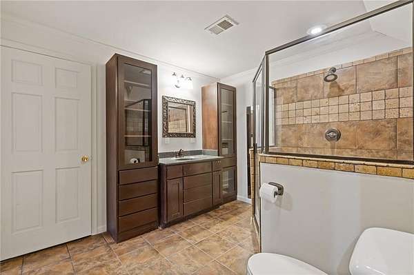 The main residence features 4 spacious bedrooms and 3.5 bathrooms, designed for comfort and connection. The heart of the home is its inviting living area, showcasing vaulted open-truss ceilings and a striking river rock masonry fireplace, perfect for cozy gatherings. The gourmet kitchen, equipped with high-end appliances, custom cabinetry, and honed granite countertops, makes hosting a breeze. Newly renovated primary bath! Historic first-growth pine floors, salvaged from Canton's old sheriff's office, add rich character and timeless charm to every step.