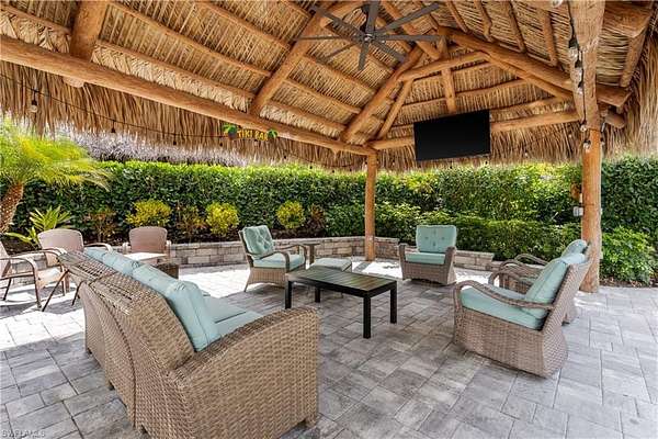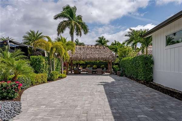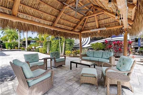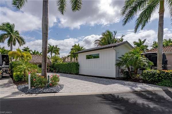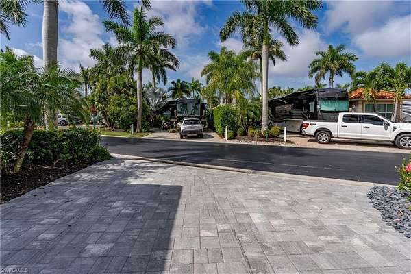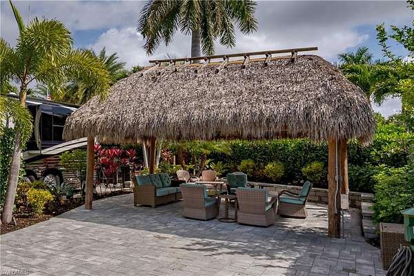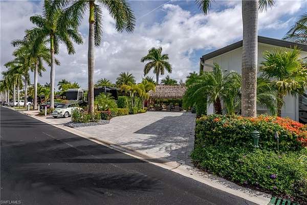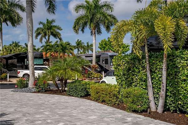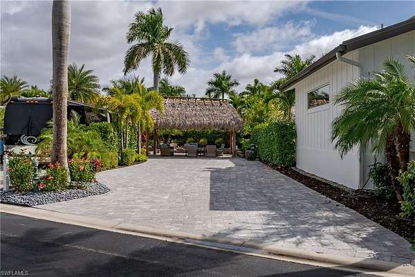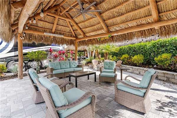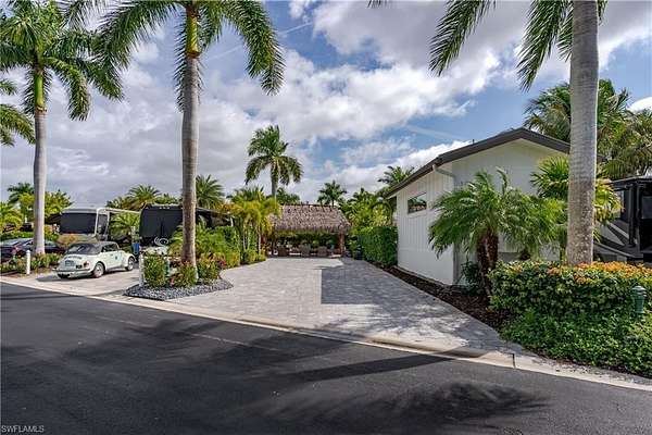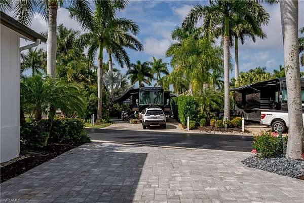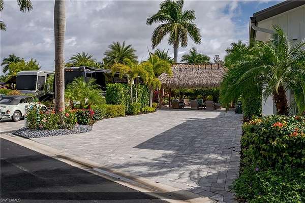 Lot 99 - Welcome to your own private oasis in the prestigious Naples Motorcoach Resort in beautiful Naples. This beautifully paved motorcoach property welcomes you with decorative stone accents at the front, creating an elegant entrance that immediately sets the tone for the tropical retreat that awaits. Once you park your coach and make your way to the rear of the property, you'll discover the true heart of this property, an oversized tiki hut designed for relaxation and entertaining. Surrounded by lush, meticulously maintained landscaping on both sides and across the rear, the space feels like your own private tropical getaway. The tiki is thoughtfully furnished, and all furniture is included, allowing you to start enjoying the Southwest Florida lifestyle the moment you arrive. This property also offers outstanding convenience within the resort, located just a short stroll to one of the resort's satellite pool and spa areas, complete with a bathhouse for added comfort and convenience. For pet lovers, the dog park is also close by, making it easy to give your four-legged companions plenty of room to play and socialize. Whether you're hosting friends for evening cocktails under the tiki, enjoying a quiet morning coffee surrounded by tropical landscaping, or relaxing after a day at the pool or exploring Naples, this property provides the perfect setting to unwind. Owners in Naples Motorcoach Resort enjoy luxury resort-style amenities, including a spectacular infinity-edge pool overlooking the lake, spa, clubhouse, fitness center, pickleball courts, dog park, and a vibrant social calendar. The resort's prime location also places you just minutes from the world-class dining, shopping, boating, and white-sand beaches that make Naples one of Southwest Florida's most desirable destinations. Beautiful pavers, lush tropical landscaping, a spacious furnished tiki, and a convenient location within the resort combine to create the perfect motorcoach retreat. Come experience this exceptional property and discover why life at Naples Motorcoach Resort truly feels like being on vacation every day.