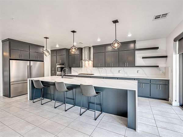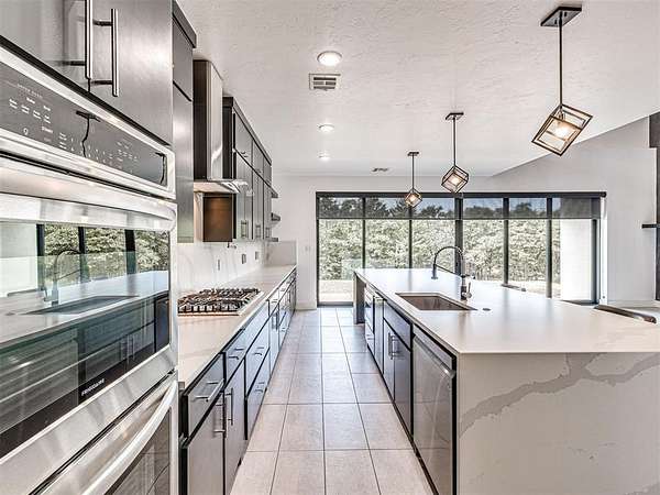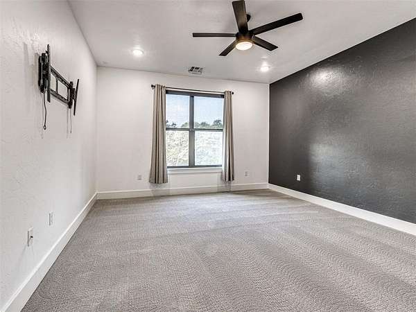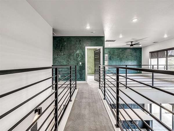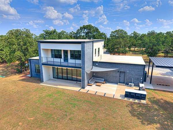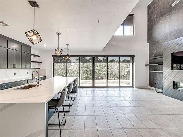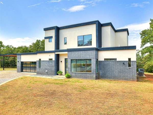 VA Assumable! Behind the gates of Highpointe Estates, this modern retreat was designed for entertaining and connection. Set on 5 (MOL) acres with a stocked pond and walking path, it offers both privacy and community. Inside, a wine cellar tucked under the stairs leads into the dining room-perfect for gatherings. The open-concept living area features soaring ceilings, a chef's kitchen, and a seamless flow to outdoor spaces. The heated and cooled garage doubles as a flexible entertainment or hobby space. Outside, enjoy an outdoor kitchen, covered sitting area, and a poured pad ready for a basketball court or storage building. Upstairs, a private patio is ideal for sunsets and quiet evenings. Just minutes from Lake Arcadia, local amenities, and the growing East Edmond area-modern living meets country comfort and community charm This listing is in partnership with Guard Home Warranty.
