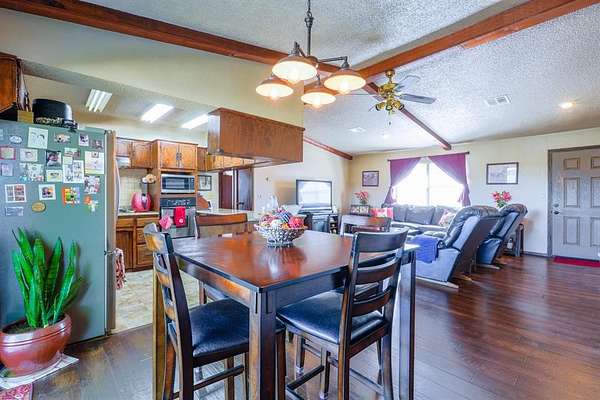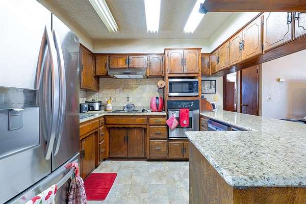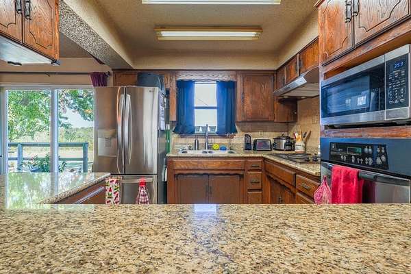 Discover the charm of this stunning ranch-style home nestled on 21 acres of prime recreational land, conveniently located on paved roads near Konawa Lake. This property offers a 20x20 shop on a slab foundation with standard overhead door. Experience the ideal blend of open, cleared spaces and lush woods, complemented by a seasonal creek that enhances the natural beauty of the landscape. Step inside to find a cozy cabin feel with a thoughtfully designed floor plan that maximizes comfort and functionality. Built in kitchen appliances, reverse osmosis water system under sink and granite countertops are just a few of the upgraded items in the home. The oversized double-tiered back deck is ready for your pool and invites you to unwind and enjoy the tranquil surroundings, making it an ideal spot for relaxation or simply soaking in the views. With a two-car attached garage and an additional carport, you'll have plenty of room for vehicles and recreational gear. The park-like setting is alive with an abundance of wildlife, making it a hunter's paradise or a peaceful retreat for nature lovers. This property offers a unique opportunity to connect with nature while enjoying the comforts of home.