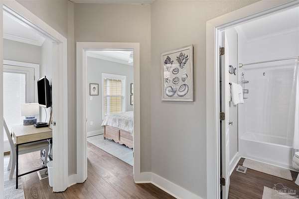 Discover paradise in this beautifully furnished 3 bedroom/2.5 bathroom condo in the gated island resort of Purple Parrot. Tucked away towards the back of the resort, this gem provides a more tranquil experience. Step inside and be welcomed by an inviting open floor plan living space adorned with tasteful decor. The updated kitchen features new countertops, crisp white cabinetry, all-new appliances, and plenty of counter space. Enjoy dining in the cozy dining area or on the expansive screened-in porch. Upstairs, you will find the primary suite to the right, which offers a private balcony, double vanity, and a tiled walk-in shower. On the other side are the additional guest rooms that offer their own private balconies as well. Adding to its appeal, this condo has been meticulously maintained by its current owners. The roof was updated in 4/2026. Other items updated in 2022 include the washer/dryer, windows, and water heater. Purple Parrot Resort offers owners and guests exclusive access to an impressive array of amenities: a 5,000 sq. ft. lagoon-style outdoor pool with waterfall and hot tub, year-round indoor pool and hot tub, fitness center, saunas, beach volleyball, and of course, the beloved Tiki Bar with live music. HOA dues include all utilities (water, sewer, trash, cable, and internet) except electric. Perdido Key's stunning white-sand beaches are just a minute away by car or a short bike ride, with shopping, dining, and golf all close at hand. Whether you're searching for a profitable investment property with a proven rental history or a vacation retreat to create lasting family memories, this condo delivers on both. Call today for your private tour!