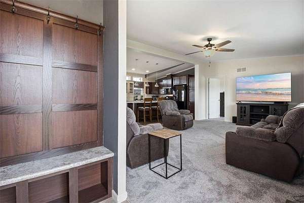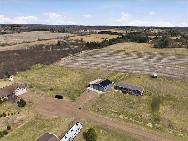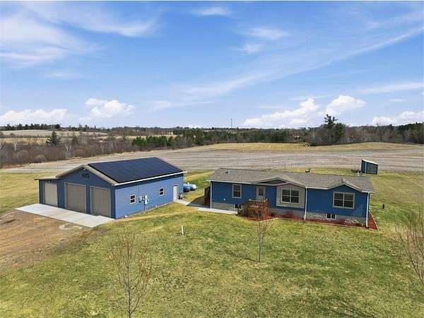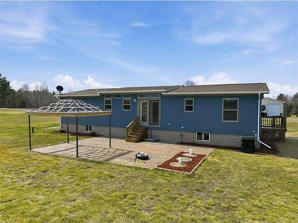 Discover the perfect balance of serenity and tranquility in this beautifully maintained 2018-built, 3-bedroom, 2-bathroom home. Situated on a lush 2-acre lot just outside the city of Turtle Lake, this property is a rare find for those seeking a modern lifestyle with minimal overhead. The standout feature is an elaborate, high-output solar system designed to provide total energy independence—say goodbye to monthly electric bills. Step inside to a bright, open-concept layout where vaulted ceilings and thoughtful window placement flood the home with natural light. The interior feels fresh and move-in ready, featuring new Shaw carpeting (installed 2024) in both the living room and the spacious primary suite. Whether you are hosting a dinner or enjoying a quiet evening, the seamless flow between the kitchen and living areas creates a welcoming atmosphere. For the hobbyist, mechanic, or small business owner, the outbuildings are second to none: Main Garage: 30' x 40' shop featuring impressive 14-foot sidewalls, perfect for lifts, large equipment, or boat storage. 15' x 40' lean-to addition provides covered space for trailers or firewood, complemented by an 8' x 18' garden shed for all your tools. The expansive backyard is anchored by a stunning paver block patio complete with a custom pergola and fire pit, creating an ideal setting for summer gatherings. The 2-acre grounds are beautifully accented with young, decorative maple and birch trees, offering a peaceful landscape that will only grow more beautiful with time.