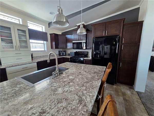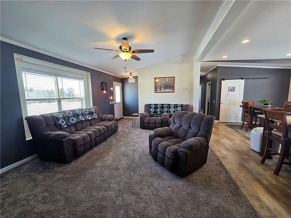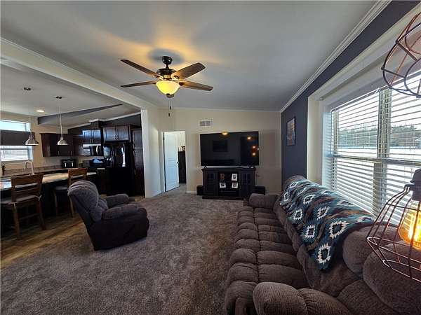 Enjoy country living with modern comfort in this upgraded 2018, 3-bedroom, 2-bath manufactured home set on approximately 2 acres. The home was professionally placed on a cement crawl space and features forced-air heat, central A/C, and a mound septic system. A major highlight is the impressive 30'x40' garage with 12' sidewalls, a 6" poured concrete slab, and two overhead doors measuring 10'x10' and 12'x10'. An additional 15'x40' fully enclosed garage addition offers a 9'x9' overhead door, providing exceptional space for vehicles, storage, or hobbies. Relax outdoors on the backyard patio with a pergola and fire pit, and enjoy extra storage with the 12'x20' garden shed. This property offers space, functionality, and peaceful country surroundings.