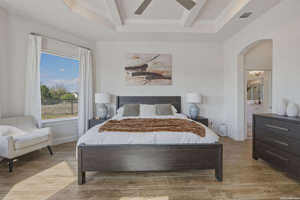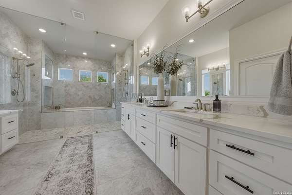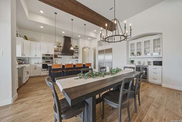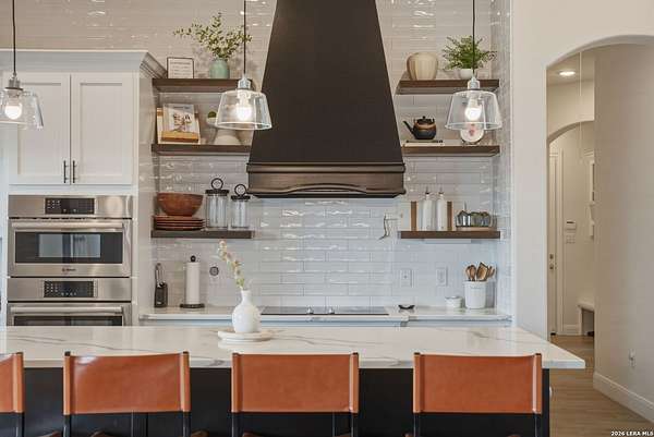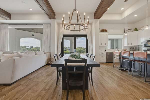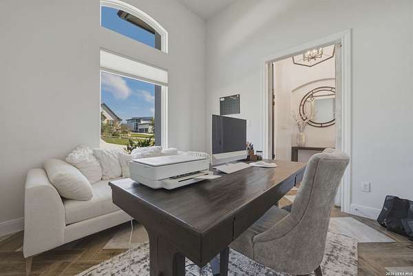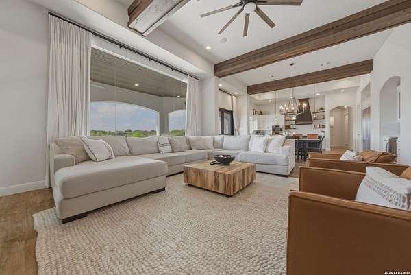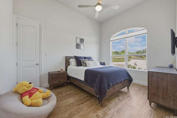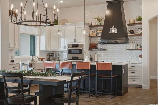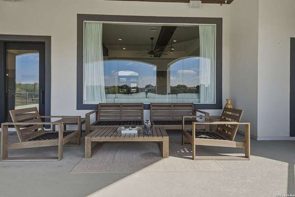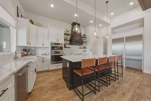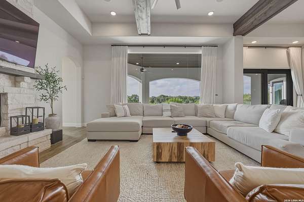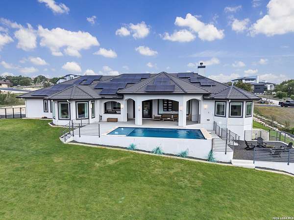 Discover one of the most exceptional luxury homes for sale in New Braunfels, TX at 1356 Bordeaux Lane, a stunning custom-built Mediterranean estate nestled within the exclusive gated community of Bordeaux at Vintage Oaks. Situated on a sprawling 1.93-acre lot in the Texas Hill Country, this magnificent single-story luxury home offers nearly 3,500 square feet of meticulously crafted living space, making it a premier offering for buyers seeking Hill Country real estate with acreage. From the moment you arrive, this Texas Hill Country luxury estate commands attention with its iconic Mediterranean architecture, crowned by a durable porcelain tile roof and powered by a full solar panel system, a rare marriage of old-world elegance and modern, energy-efficient home design. A grand circular driveway, resort-caliber landscaping, and lush surroundings create the kind of curb appeal that defines luxury acreage properties in New Braunfels. Step inside to an expansive open-concept floor plan tailored for upscale living and effortless entertaining. The great room flows into a gourmet chef's kitchen appointed with a Thermador refrigerator and freezer, oversized island with Level 5 granite countertops, and custom cabinetry. A dedicated wine bar with built-in wine fridge and shelving elevates every gathering - perfect for the luxury lifestyle buyer. This 4-bedroom luxury home features private en-suite bathrooms in every bedroom, ideal for multi-generational living, hosting guests, or creating a true resort-style retreat. The primary owner's suite is a spa-inspired sanctuary with a sleek electric fireplace, motorized blackout blinds, dual vanities, soaking tub, dual-head walk-in shower, and an oversized California Closet with custom built-ins, redefining luxury master suite living in the Hill Country. A glass-door dedicated home office and a versatile flex room, ideal as a home gym, meditation studio, or secondary office, make this property the ultimate luxury work-from-home estate designed for today's discerning buyer. Your private backyard retreat is nothing short of spectacular. Designed for year-round entertaining, the outdoor living space features a modern in-ground pool with seating, a fully equipped outdoor kitchen with built-in gas grill, outdoor shower, fire pit lounge area, full fencing, professional landscaping, and a built-in surround sound system. Direct access to Vintage Oaks walking trails connects luxury living with the natural beauty of the Texas Hill Country. Oversized 2 car garage with EV charging station Whole-home water filtration and softener system Designer lighting and plumbing fixtures throughout Solar-powered home with energy efficiency for long-term savings. Located in one of the most sought-after master-planned communities in the Texas Hill Country, you'll enjoy access to multiple resort-style clubhouses, state-of-the-art fitness centers, tennis courts, a lazy river, community pools, and over 6 miles of scenic walking trails. Just minutes from Canyon Lake, the Guadalupe River, and the renowned Texas Wine Country, this is more than a home, t's a lifestyle destination in New Braunfels, TX.