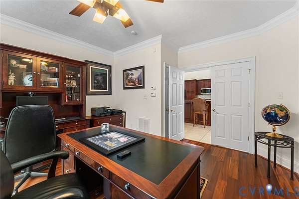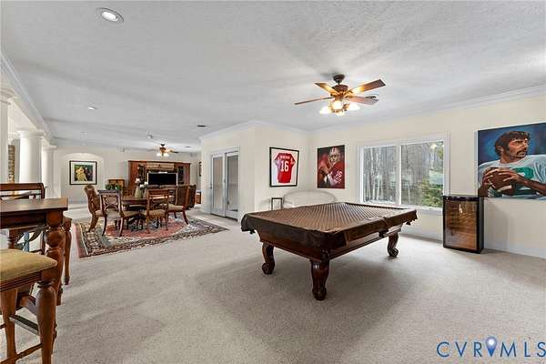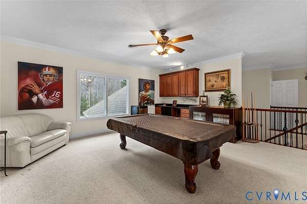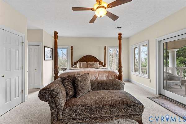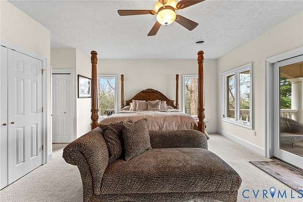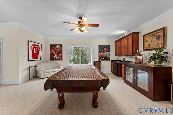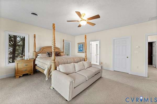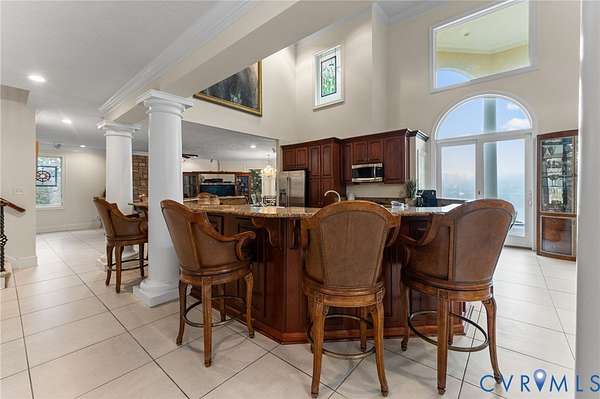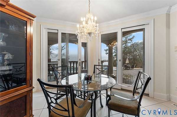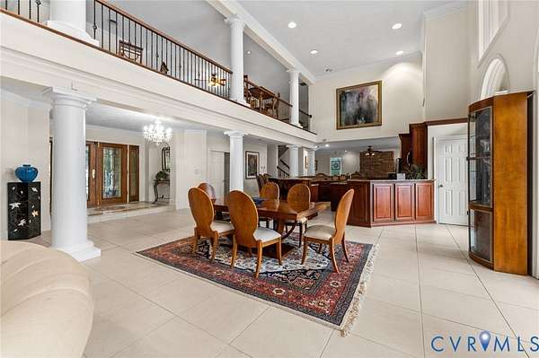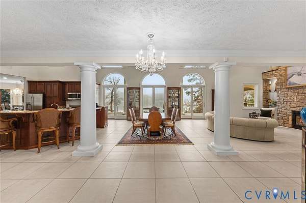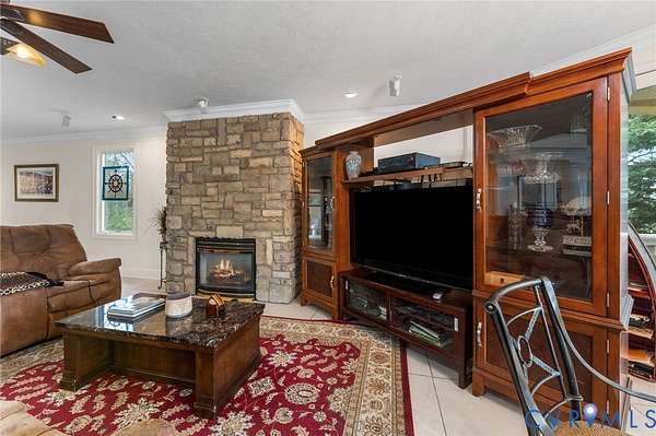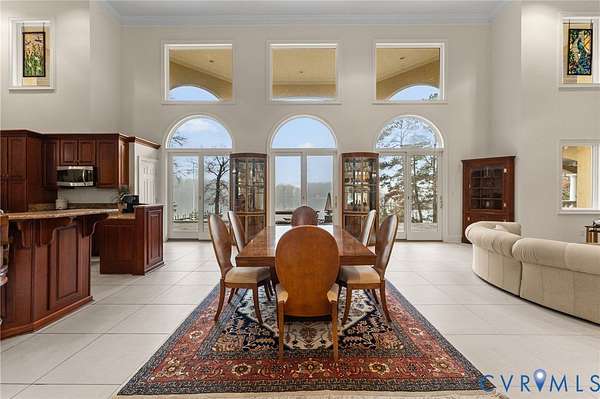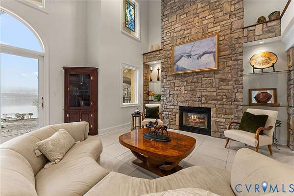 Set along the Corrotoman River in Virginia's highly sought-after Northern Neck, this remarkable waterfront estate delivers expansive river panoramas, deep-water access, and a private pier designed for true boating enthusiasts. Built in 2001 with enduring craftsmanship, the home was thoughtfully designed to maximize both the views and effortless entertaining. The main level welcomes you with soaring ceilings and uninterrupted sightlines to the water. The great room anchors the home with a dramatic vaulted ceiling, a gas fireplace, and floor-to-ceiling windows that flood the space with natural light. An open flow connects the living area to the dining space and the chef's kitchen, which features granite countertops, a large center island, abundant bar seating, and seamless access to the adjoining family room complete with its own fireplace and wet bar. The waterfront primary suite offers a peaceful escape, highlighted by sweeping river views, ample storage, and a spa-inspired bath with double vanities, and an oversized walk-in shower. The lower level includes two private office spaces, ideal for remote work, hobbies, or flexible living arrangements. Upstairs, you'll find a spacious recreation and media area, three additional bedrooms, two full baths, and generous walk-in storage rooms. Outdoor living is equally impressive, featuring a resort-style in-ground pool and an expansive patio perfectly suited for entertaining or quiet evenings by the water. Additional highlights include four garage bays, heated floors, custom ceramic tile, a whole-house generator, and a private gated entrance. Located just 20 minutes from the shops, restaurants, and amenities of Kilmarnock, this exceptional property offers privacy, luxury, and premier waterfront living in one extraordinary setting.