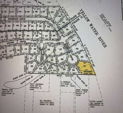 Beautiful Azalea Woods subdivision Cul de sac lot. Yellow Water River at rear of this .66 of an acre lot, perfect for relaxing. All underground utilities, paved roads, street lighting, Ponchatoula school system, fire station within walking distance. Well established, nature inspired subdivision west of Ponchatoula on hwy 22, green space set aside and bordered by the Yellow Water River. Nearby shopping malls, dinning, theaters, parks, restaurants and easy commuting to I-12 & I-55. Lot includes Easement access for utilities.