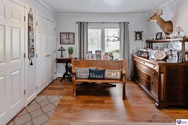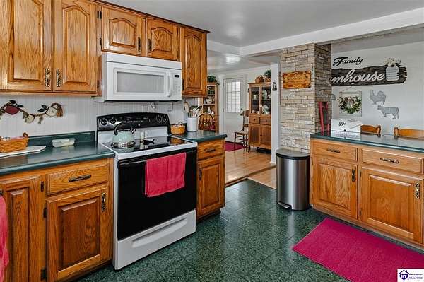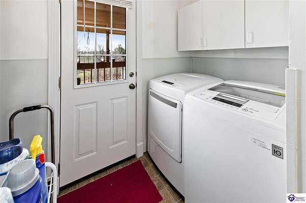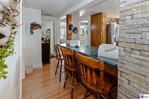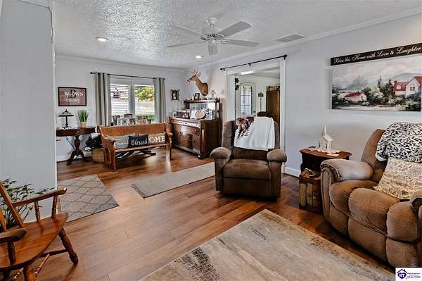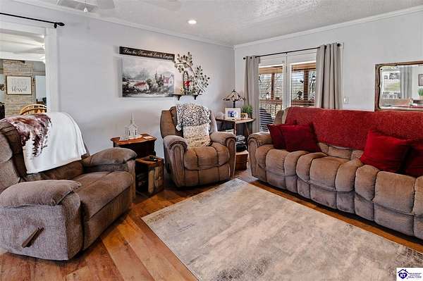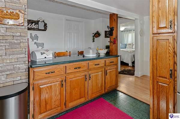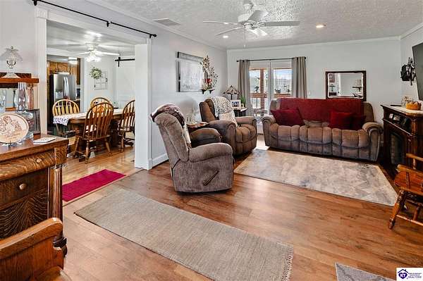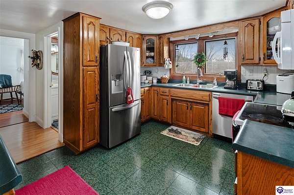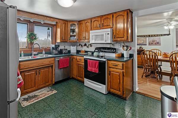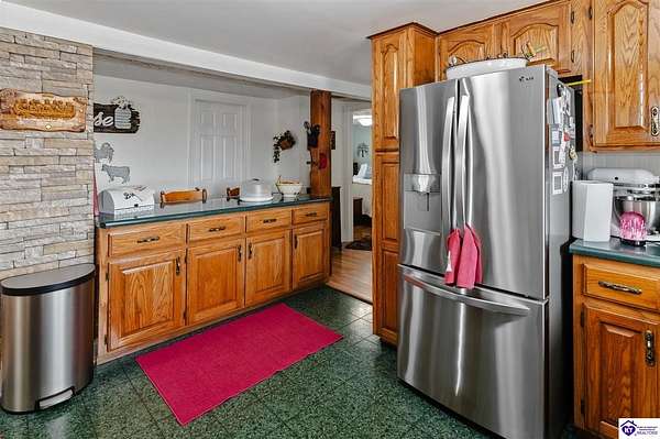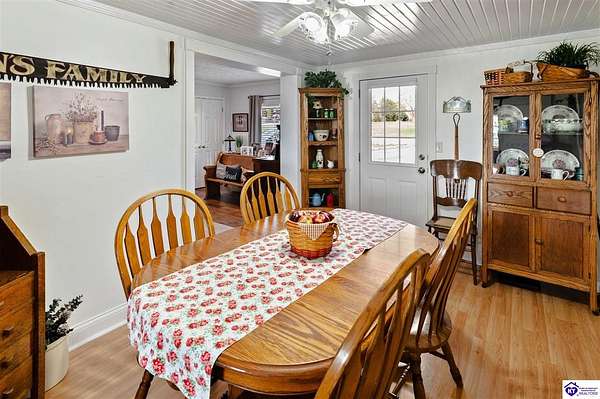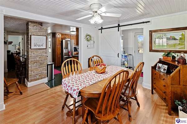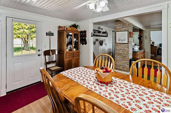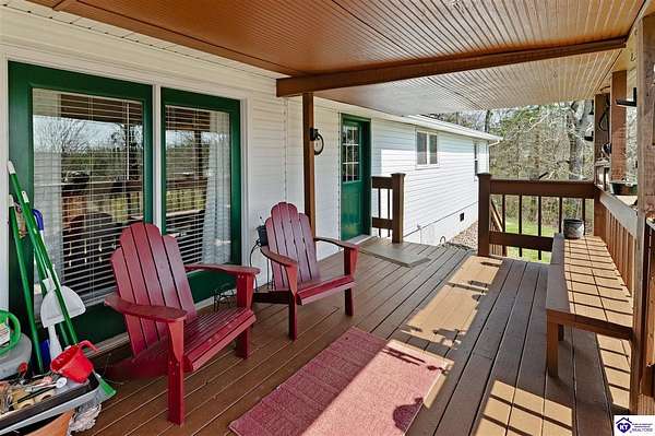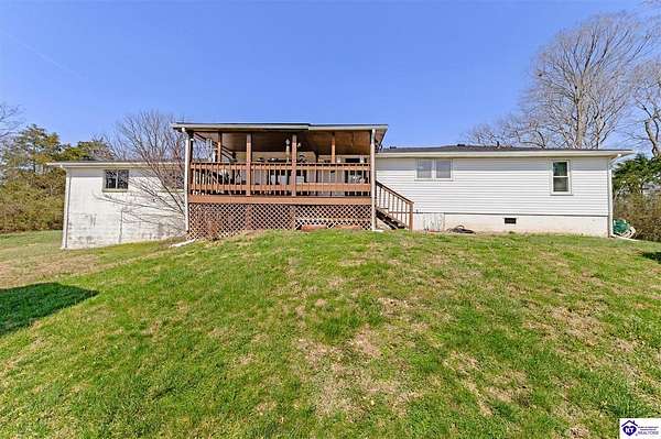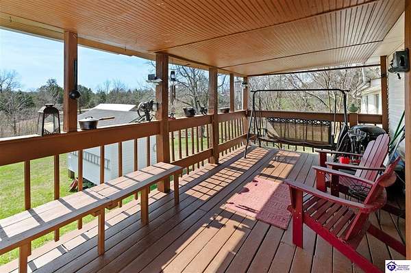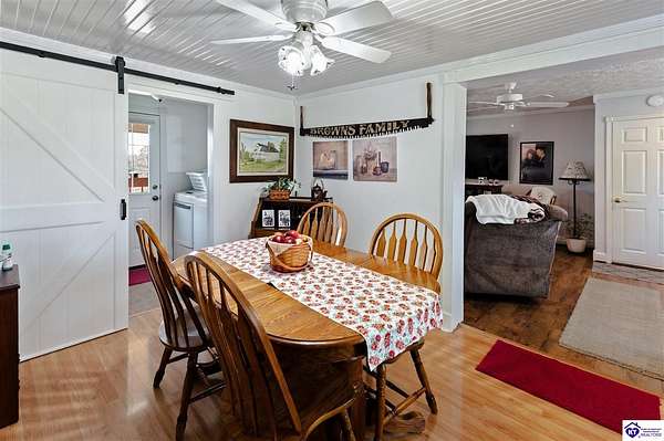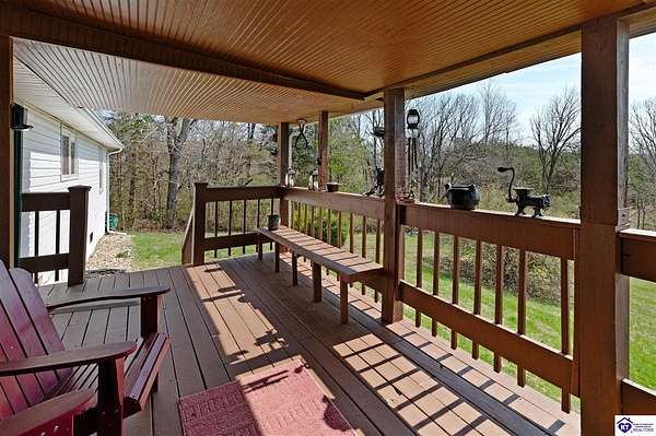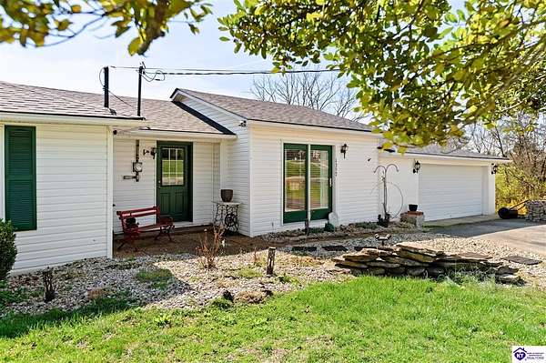3 bedroom ranch situated on 2 acres. Comfortable flow from the living room to the dining area and into the kitchen. The kitchen offers abundant cabinet space and features an island that provides additional seating and storage. Just off the kitchen is a convenient laundry room with built-in cabinetry for extra organization. The dining area opens to a covered deck, perfect for enjoying the peaceful views of the property. Additional features include a 2-car attached garage, storage shed, and an older barn. Only minutes from Mt. Washington. Bullitt County school district!
