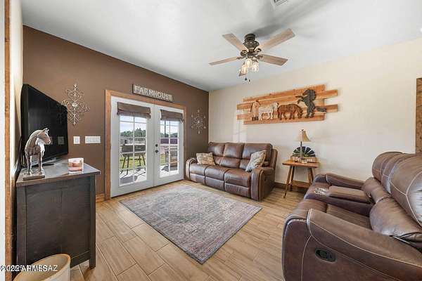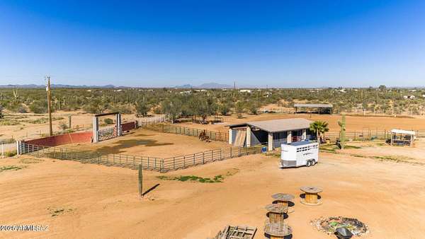 Bring your horses, chickens, and ducks! Enjoy space and freedom on your 4.24 acres. Located just a short drive from the Desert Museum, Old Tucson and the entrance to the Saguaro National Park. This property includes a barn, chicken coops, a 50' round pen, wash stall, 4 under cover horse stalls with sliding doors, oversized arena/turn out area, an additional stall and separate electric box for lighting Enjoy the sweeping mountain views in all directions from your expansive covered porches. This home stands out with it's unique handcrafted wainscoting and feature wall. If cooking is your love language, prepare to fall head over spatula's in this dream kitchen. The gorgeous granite countertops offer both a beautiful focal point and a highly functional work surface. The bedrooms are spacious The primary bedroom is large, has access to the back porch and has a supersized closet.