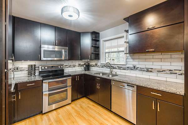 - Dishwasher, Disposal, Double Oven, Electric Oven, Electric Range, Microwave, Stainless Steel Appliance(s)