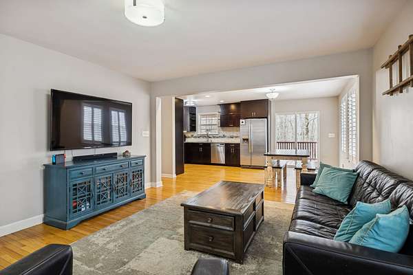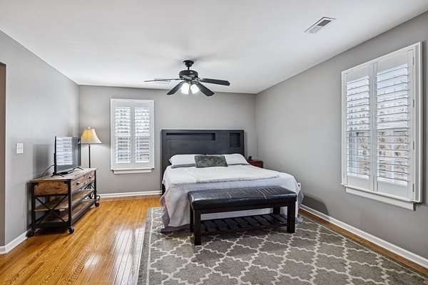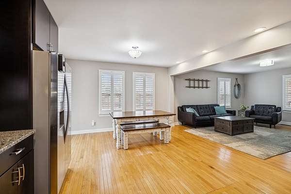Step inside to warm hardwood floors that flow throughout the main living areas, leading to a large, chef-inspired kitchen boasting granite countertops, stainless steel appliances, and ample space for gathering or everyday meals. The expansive primary bedroom suite provides a serene retreat with its own luxurious bath, while a separate, large in-law suite offers flexibility for extended family, guests, or potential for rental income—complete with private entrance and full bath.
