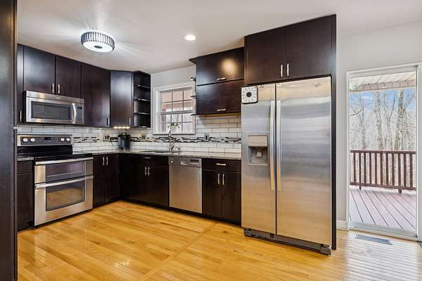 Outdoor living shines here: Relax and enjoy your coffee on the inviting covered front porch or entertain on the amazing covered deck, both overlooking your breathtaking private lot. The fully fenced yard is ideal for pets, gardening, hobbies, or future adventures.