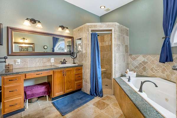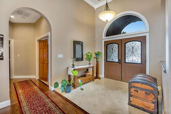 Beautiful Ranch sitting on almost 2 acres-Fanastic Location! Room to Roam-Open Floor Plan-Entrance 14 Ft ceilings- 12 ft ceilings kitchen & family room & -living room-10 ft ceilings in bedrooms--3 car garage-Relaxing view from Covered back porch/patio-covered front porch- beautiful engineered wood flooring thru-out-Gourmet kitchen (double oven) 42 cabinets-large panty-Tile floors- Roof 2012-HVAC 2012-2 water heaters 2025 -One for main and one for primary bathroom-4th bedroom currently used as study/office- 2nd and 3rd bedrooms have jack n jill bathroom-double sided fireplace in family room and breakfast room-Crown Molding-6 panel doors Spacious primary bedroom suite-Bath has 2 vanties-soaking tub and walk-in shower--No HOA- Exclude Ring Door bell-Refrigerator, Washer & Dryer.First Floor Living in this beautiful home.
