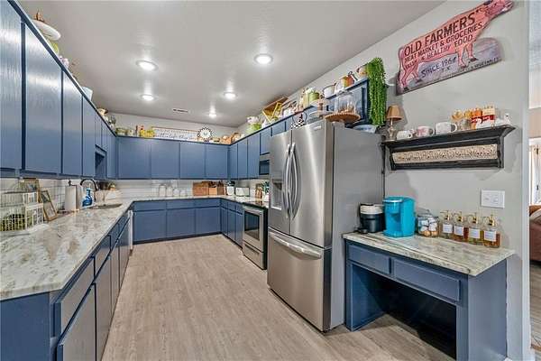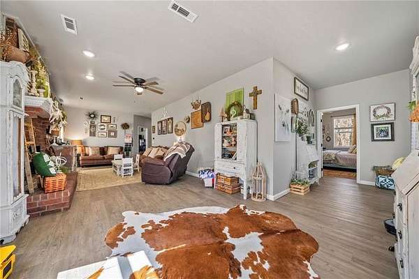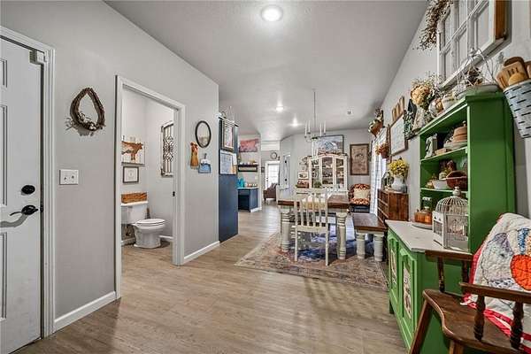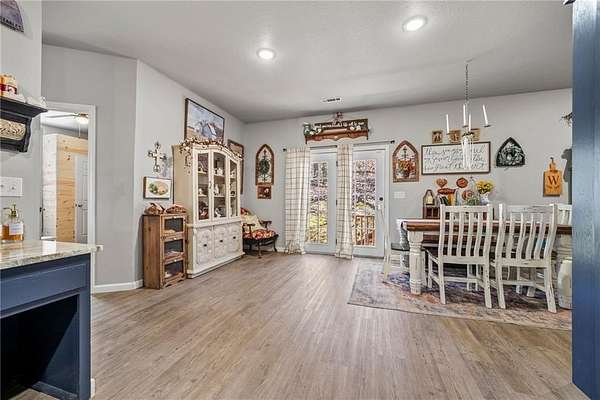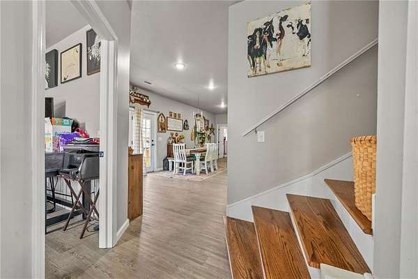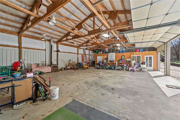 Location, location, location! This recently updated 5-bedroom, 2.5-bath home combines modern style with spacious living, all set on a beautiful 5-acre hunter's dream property. Inside, fresh updates enhance the open living areas, including a stylish kitchen with ample storage and a private primary suite with a large ensuite bath. Four additional bedrooms provide plenty of space for family, guests, or home offices. A standout feature is the impressive 80' x 38' four-bay commercial shop offering 352 square feet of heated and cooled space that includes office space or bonus room—ideal for business use, storage, or large-scale projects. The acreage offers endless opportunities for outdoor activities, with endless wildlife or simply enjoying the privacy of country living, all while being move-in ready with thoughtful updates throughout. Approximately 8 minutes from Fayetteville, 30 minutes to Bentonville, and 35 minutes to Fort Smith, this property has all of the privacy of country living, yet conveniences of city life!