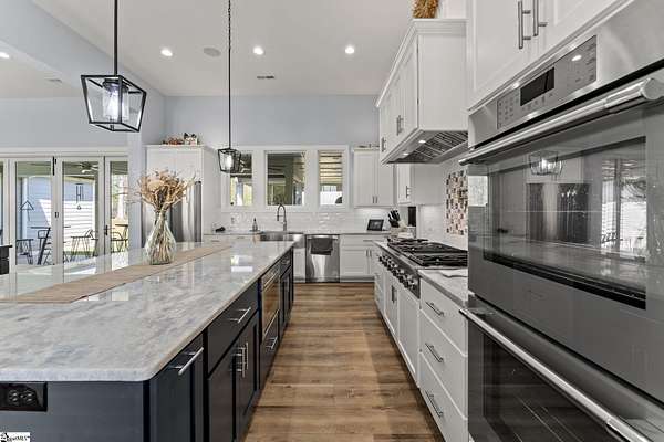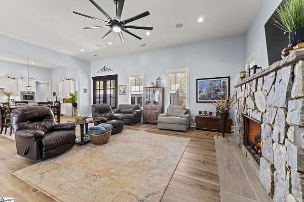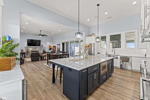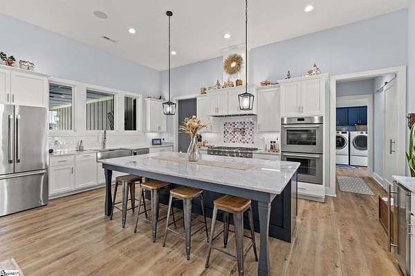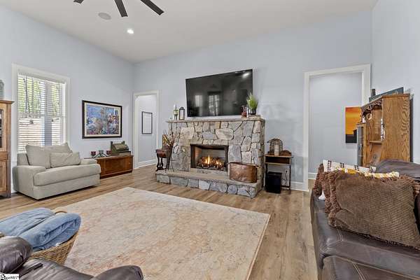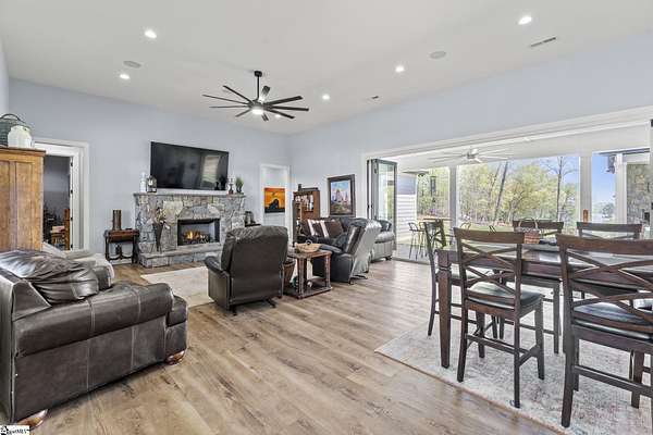 Welcome to 1359 Martin Creek Road where refined indoor-outdoor living meets unmatched utility. 4-bed luxury estate in Seneca with a private gated entry, 4.47 scenic acres, and elevated Lake Hartwell views with a contiguous 6 acres available also. Built in 2022, this 4,307 sq ft custom home blends timeless design with high performance systems, including whole property water filtration, 400 amp service, and a 26kw whole-home generator for confidence and continuity. Contact Chris Horrell @ 864-351-8239 for a private showing. Step inside to 8 ft doors, abundant natural light, and an open concept great room with gas log fireplace and 8 ft accordion glass doors opening to a covered outdoor living space connecting open concept with open air: outdoor kitchen, outdoor shower, outdoor TV, gas grill, and a wood-burning fireplace with gas starter. The home is plumbed and wired for a pool. The chef’s kitchen features Thermador 6-burner gas cooktop, double oven, in-cabinet microwave, marble countertops, pull-out cabinetry, Ruvati sink with accessories, an in-cabinet ice maker, plus a walk-in pantry with generous storage and a dedicated Christmas light switch. The primary suite is a true retreat with garden tub, large walk-in shower with rain head plus handheld, dual vanities including a custom makeup station, and marble countertops throughout the baths. All bedrooms offer walk-in closets and return air. Enjoy a spacious laundry with custom cabinets, mud sink, and washer and dryer that convey, plus two-zone HVAC, tankless water heater, and an encapsulated insulated crawl space with dehumidifiers. Smart gate app control and entertainment-ready features include a 4-zone speaker system, security cameras, and TVs that convey (confirm details with agent). Garages and workshop space impress: an attached garage with 16 ft ceilings and high-top doors that is car-lift ready, plus a detached shop with wash bays, climate-controlled garage, RV bay with 50 amp electric, water and septic of its own, loft storage, and built-in cabinetry that conveys. 500 gallon propane tank, Up Country Fiber internet, and Blue Ridge Electric. No HOA, 3 minutes to Martin Creek Boat Ramp and minutes to Clemson Marina, Contact agent for Airbnb viewing availability.
