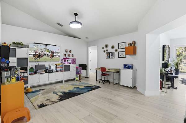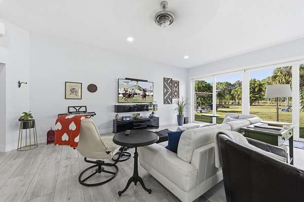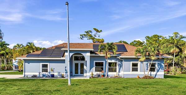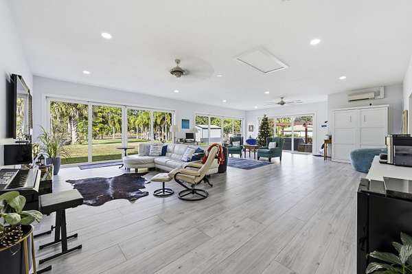 Fully fenced 2.04-acre property with zoning that allows horses--an increasingly rare opportunity just minutes from West Palm Beach. This exceptionally maintained 4-bedroom residence offers 3,511+/- total square feet, including a substantial 1,100+/- square-foot solid CBS addition with soaring 10-foot ceilings, providing outstanding flexibility for modern living. An open kitchen with wood cabinetry, granite counters, and stainless-steel appliances flows seamlessly into the main living and dining areas. A split-bedroom floor plan offers privacy, while multiple sets of sliding glass doors connect the home to a covered outdoor pavilion for relaxed indoor-outdoor living. Located in unincorporated West Palm Beach, this property offers land, freedom, and proximity rarely found together.