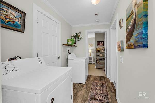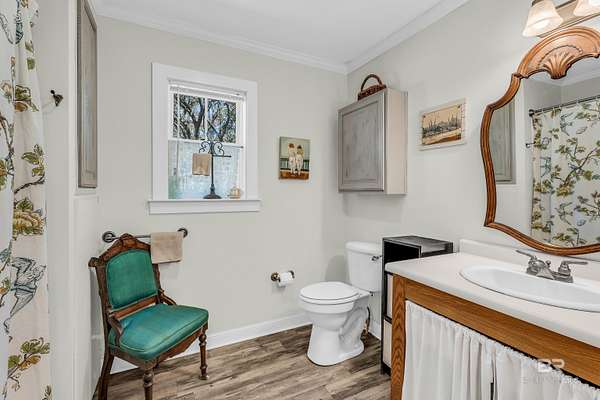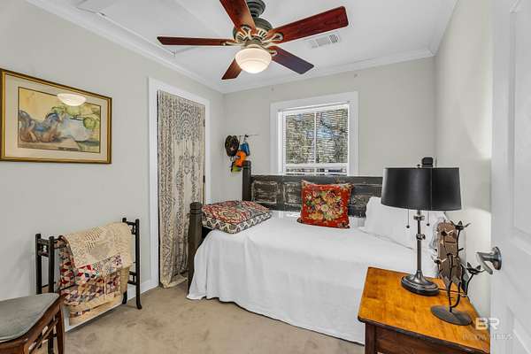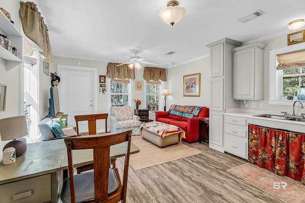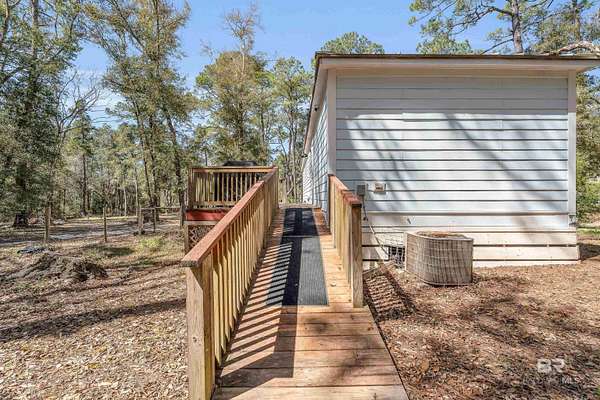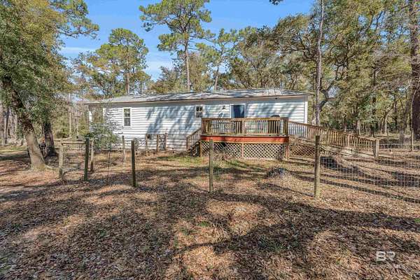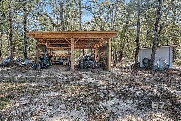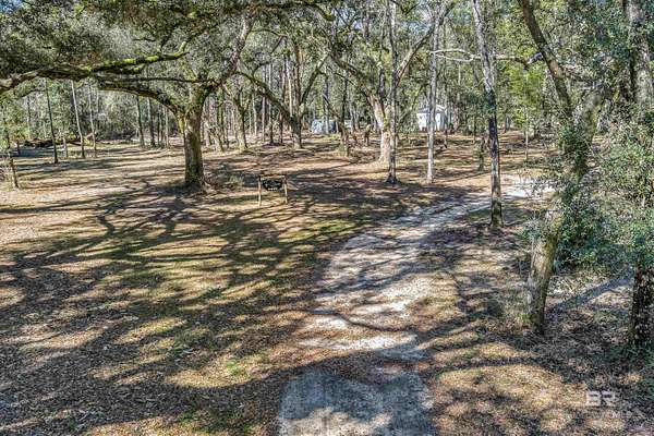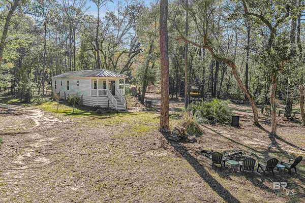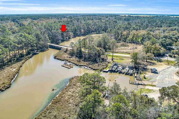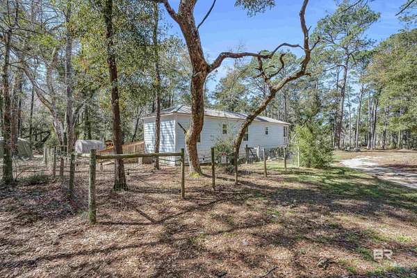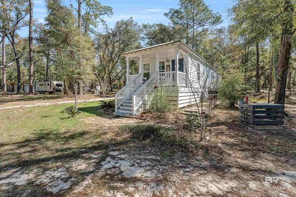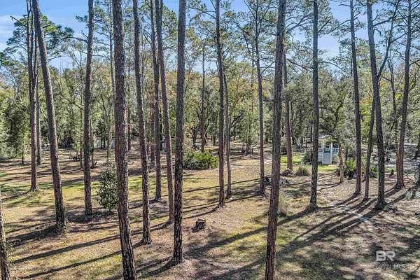 Discover a rare almost 10-acre waterfront parcel on Nolte Creek, which feeds into the scenic Magnolia River. This serene, wooded property boasts 600 feet of water frontage with a private dock, offering an ideal setting for boating, fishing, kayaking, and canoeing. With water depths ranging around 4 to 8 feet depending on the tide, the creek is easily navigable and provides the perfect blend of privacy and accessibility. The land is beautifully covered with mature live oaks and pine trees, creating a tranquil natural escape where wildlife such as Dolphins, Pelicans, Bald Eagles, and Ospreys are frequently spotted. While the value is placed in the land alone, there is a charming 728 Square Feet Katrina Cottage, built in 2007, on the property. Featuring two bedrooms, one bath, kitchen, laundry, den, and a deck with ramp access, the cottage provides a comfortable retreat or guest space. There is also a fenced-in area, perfect for pets. Additional improvements include two wells (one with a hand pump), a septic system, and a pole barn with storage and two stalls, ideal for equipment or hobby use. This property was once home to a fern farm, offering rich soil and potential for gardening or small-scale agriculture. With endless possibilities, this land could be used for RV pads, Airbnb rental, or a private single-family residence as it is currently zoned rural agriculture. The Nolte Creek boat launch and Magnolia Springs Marina are just around the corner, adding to the property's convenience. If you're looking for a peaceful waterfront sanctuary with investment potential, this hidden gem is a must-see. Buyer to verify all information during due diligence.