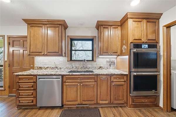 Home on 24+ Acres with Shop & Barn | Tahlequah, OK ~ Discover the peace and privacy of country living with this beautiful brick home situated on 24+ acres in the rolling hills between Fort Gibson and Tahlequah, OK. This serene property features a well-maintained home, large 30X60 metal shop with concrete floors, insulated and sheetrock. A 1,253 sq ft barn, 234 sq ft Kennel, 900 sq ft shop with 225 sq ft attached livestock shed, and 2 wells on the property making it ideal for hobby farming, ranching, or simply enjoying a peaceful open space. The home has a spacious layout and mature trees. A gated driveway welcomes you to this tranquil retreat, perfect for those looking to live the rural lifestyle with the convenience of town nearby. Property Highlights: 3-spacious bedrooms, 2-baths, A full brick home with attached 2-car garage, Generac Generator, newly remodeled Kitchen, brand new custom cabinets, granite counter tops, granite sink, new range top and double ovens, new windows adding abundant natural light, fireplace insert offering an additional heat source, and added efficiency, and covered backyard deck shaded by mature trees, gently rolling terrain with great potential for livestock or recreation. Located just minutes from Tahlequah amenities Don't miss this rare opportunity to purchase a beautiful home and acreage in a desirable area. Whether you're looking to live, or expand, this property checks all the boxes.