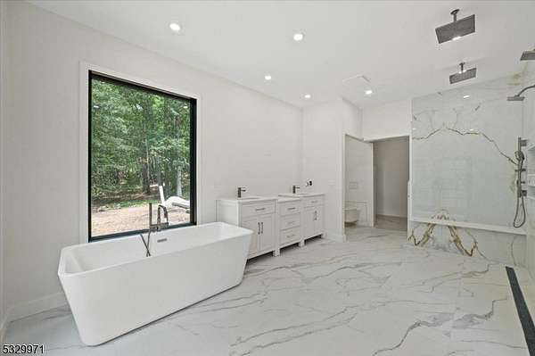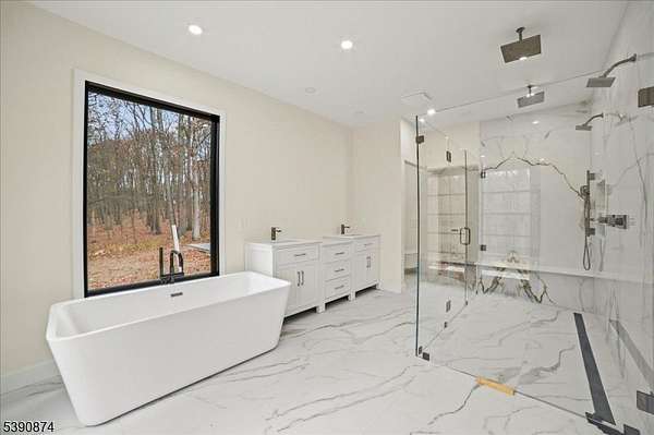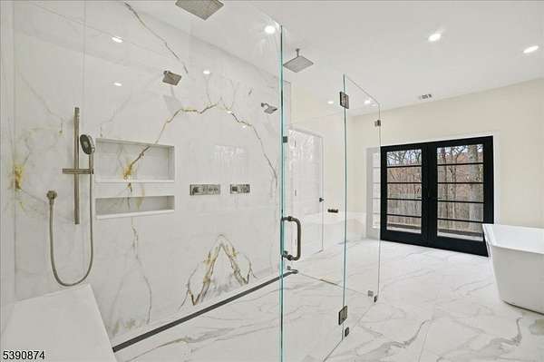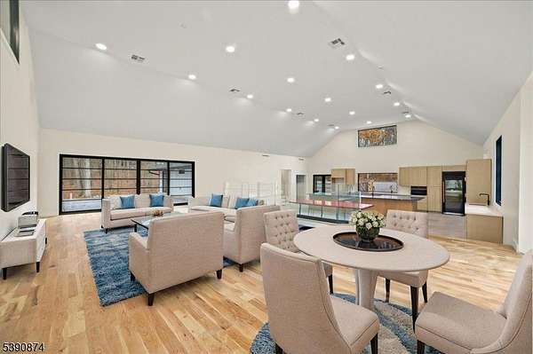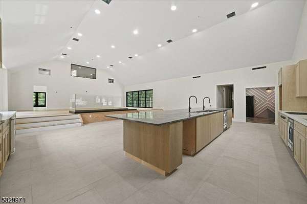 Discover this exquisite custom-built residence, ideally positioned on 8.8 farmland-assessed acres offering the rare combination of sophisticated design and reduced taxes. This estate seamlessly marries timeless elegance with contemporary living, creating an unparalleled sanctuary for the discerning buyer. The centerpiece of the home is the stunning great room, adorned with soaring 14-ft ceilings and encased in walls of windows that flood the space with natural light. Culinary enthusiasts will revel in the gourmet kitchen, featuring a striking 18-foot island and custom cabinetry. The kitchen extends effortlessly to a private, 1,000Sq. Ft. courtyard a dream setting for alfresco entertaining, gardening, tranquil reflection. The primary suite is a private haven, walk-in closet, an ensuite bath with a luxurious soaking tub & an exclusive balcony. The estate's east wing is thoughtfully designed, offering a second kitchen, three bedrooms (two with ensuite baths) and additional full bath and one bedroom with a separate entrance for a variety of lifestyle needs. The west wing hosts an elegant office, two additional bedrooms, and a spa-inspired main bath. On the lower level gym, a mudroom equipped with a built-in dog wash, and a charming veranda. Additional features include a 300-amp whole-house generator.