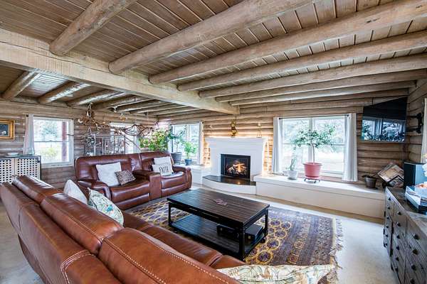 Est $5,043/moCharming, serene, and private, this 3BD/2.5BA log home rests on 5+ acres with wide-open vistas and a seasonal canal along the west boundary. The home offers an inviting blend of rustic elegance and modern comfort across two levels, where warm log craftsmanship and radiant-heated concrete floors create an elevated yet cozy atmosphere. The property features a 1,500 sq. ft. shop with 2 garage doors (one 10' door), a horse stable, and expansive open land ideal for animals, gardening, or future projects. A rare combination of tranquility, space, and refined log-home living.