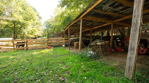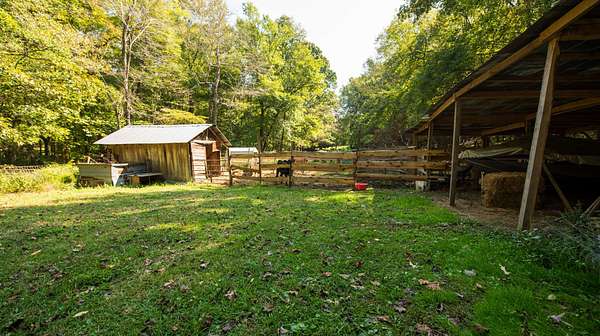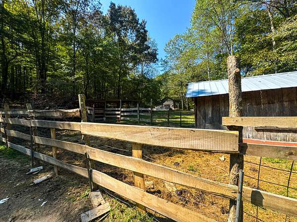 Additional improvements include a livestock corral with a small pasture area, making the property suitable for hobby farming or animals. Water is provided by a natural spring. Combined with the year-round stream and surrounding timberland, the property supports a variety of recreational and agricultural uses. Please note there is not a master bedroom or bath. There is only one bath in the house.