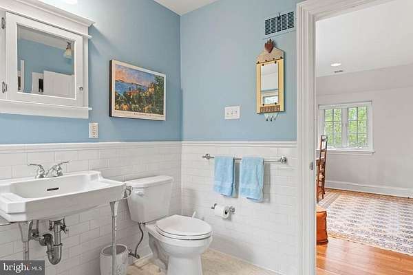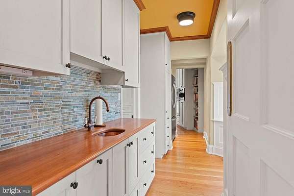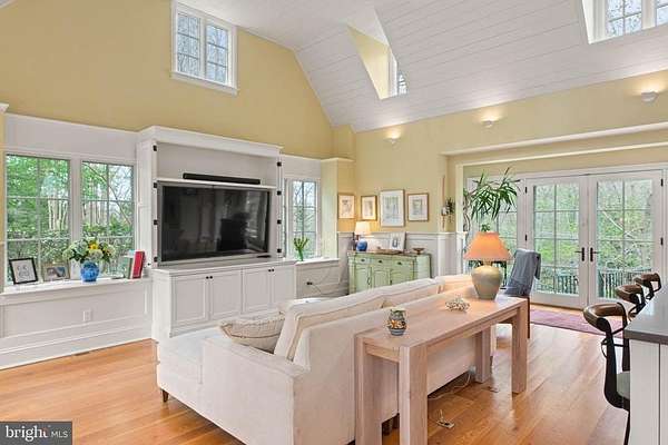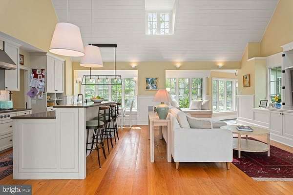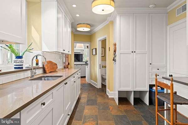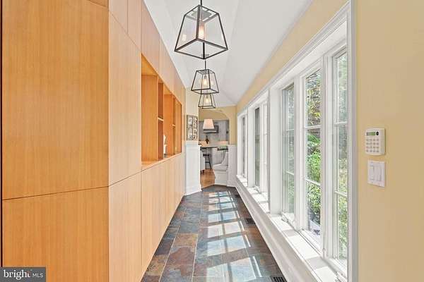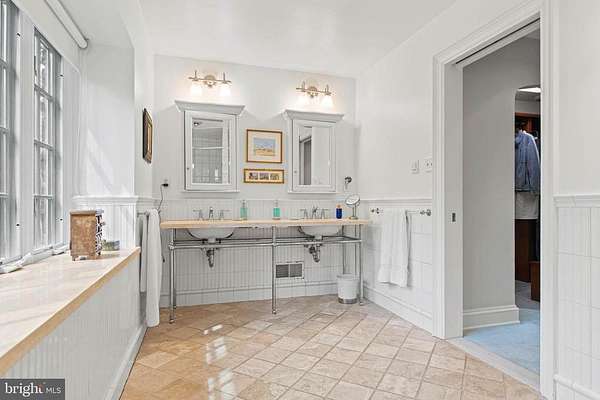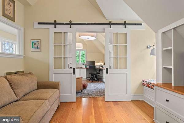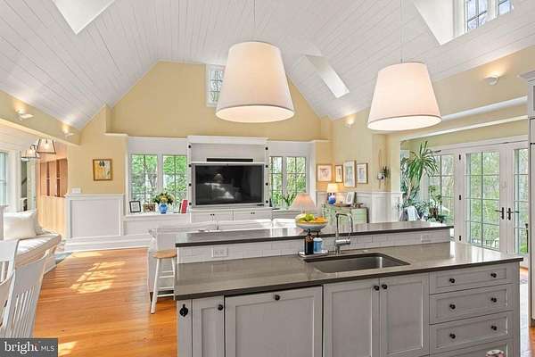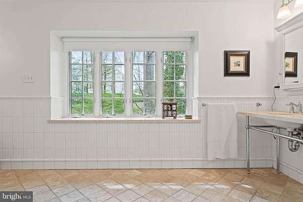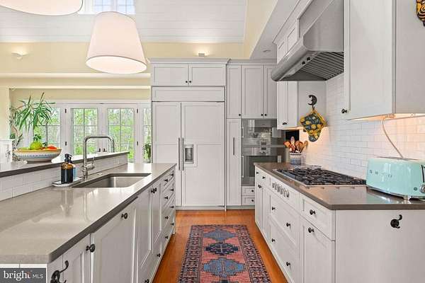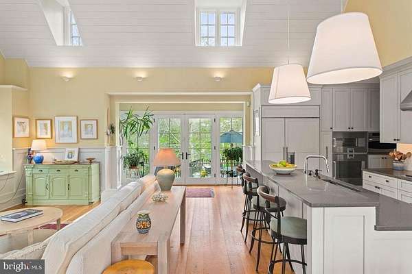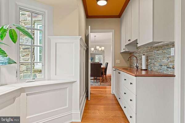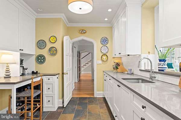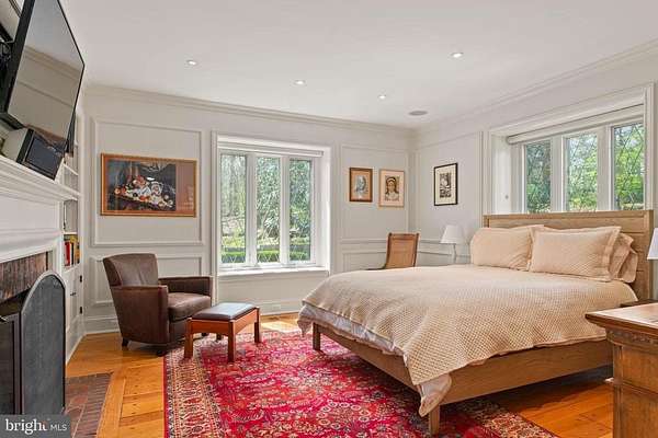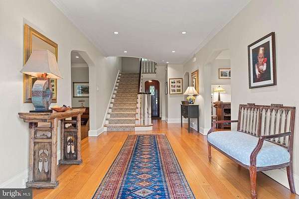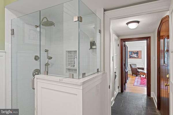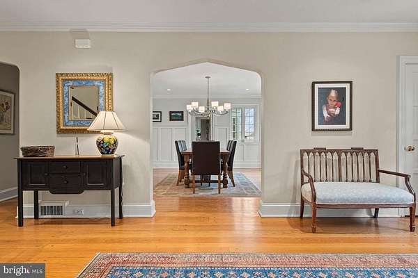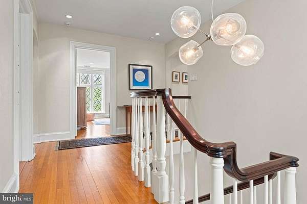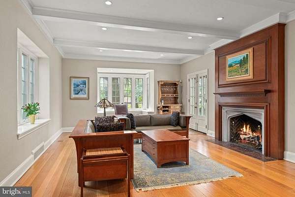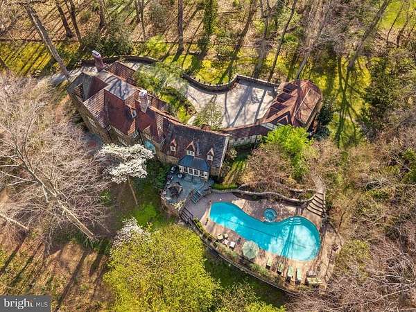 Set on 1.76 acres, this stone Colonial is defined by its elevated setting, architectural proportions, and a level of craftsmanship rarely reproduced today. A courtyard approach introduces the home and reinforces its architectural presence. The exterior reflects the character of the Main Line's most established homes, with stone construction, detailed trim work, and arched openings.The home is set within a mature, tree-lined landscape with views from nearly every room. It remains just minutes from Suburban Square, Ardmore, and the Main Line's primary amenities.A center hall entry introduces the original portion of the home, where a paneled library, formal living room with fireplace, and dining room retain their architectural integrity with detailed millwork, beamed ceilings, and random-width hardwood floors. French doors connect the main living spaces to several flagstone terraces, extending the living areas to the outdoors.The home transitions into a fully reimagined kitchen, dining, and family room, designed as the home's central gathering space. A vaulted ceiling, expansive windows, and direct access to the grounds bring in natural light throughout the day. The kitchen is equipped with high-end appliances, a large island with seating, and adjacent informal dining, all flowing seamlessly into the family room.Supporting spaces include a butler's pantry, mudroom with secondary entrance, and a sunlit gallery connecting to the three-car garage.A privately positioned upper-level suite above the garage, accessed by a separate staircase, offers flexible use as a home office or additional bedroom with full bath, well suited for guests, work, or separation from the main living areas.The primary suite is located within the main bedroom level, offering windows on three sides, two walk-in closets, and a renovated bath with heated floors. Each additional bedroom is en suite, providing comfort and flexibility for both everyday living and hosting.The outdoor setting includes terraces overlooking the pool and surrounding landscape, creating distinct areas for dining, entertaining, and quiet use.Improvements include a three-car garage with finished space above, updated kitchen and family room, guest suite on the main level, multiple HVAC replacements, rebuilt chimneys, refinished floors, and enhanced landscaping.This is a property that combines architectural character with modern livability in a setting that feels established, yet remains closely connected to everything.