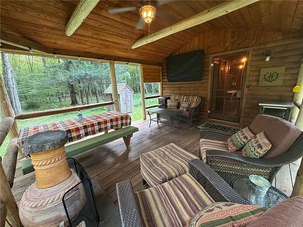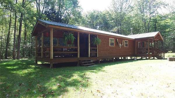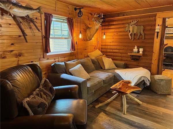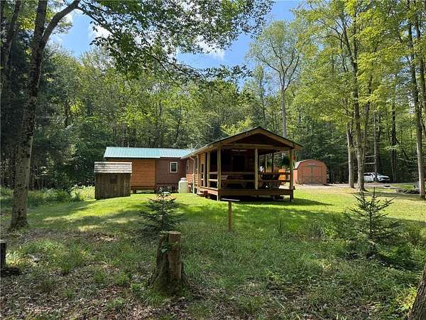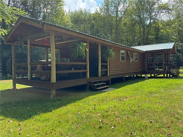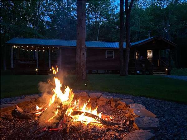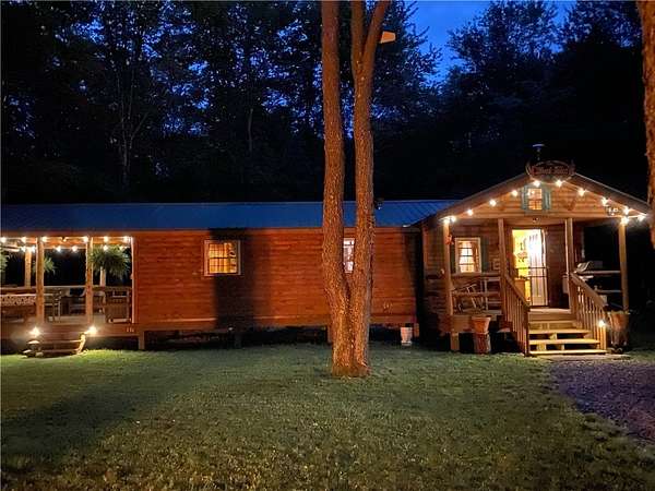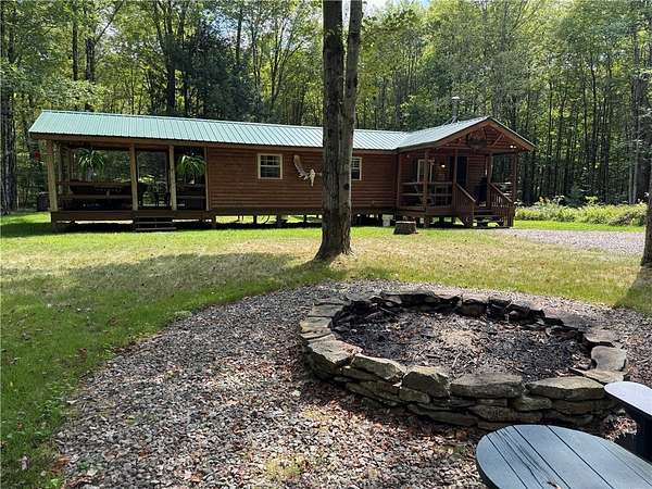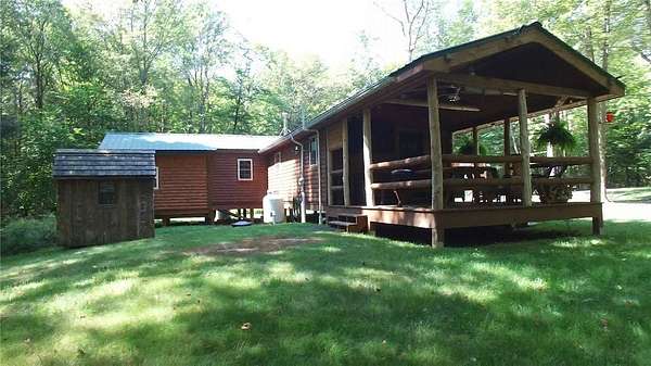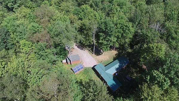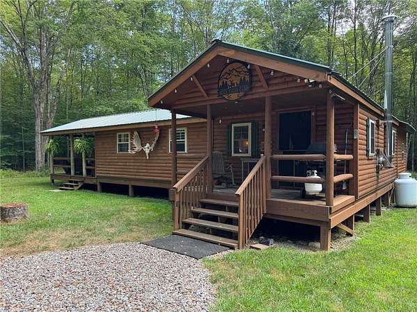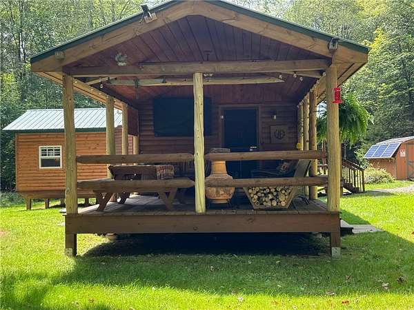 Welcome to Buck Tales Camp! Truly an escape, this picture-perfect getaway pulls you back to nature in wonderful comfort. Enter through the custom-designed iron gate and pass the ATV trailhead to the homesite. Listen to the leaves in the breeze, birdsong and crickets - you've left the world behind and found an oasis. This SOLAR POWER off-grid cabin is 4-season ready. Quality of craftmanship is evident throughout. Propane & wood heat, well insulated, proper full bathroom, nice primary bedroom, greatroom with kitchen/dining area PLUS a secondary bedroom/sleeping area with family room, utility closet, TV & internet hub. Natural wood throughout, lots of rustic chic touches to make this a turn-key vacation home. Perfect for AirBnB/VRBO! The newest addition to the cabin is the comfortable deck creating an outdoor living room. The overhead fan creates the perfect breeze to cool off on warm summer days. Cozy-up to the wood-burning chimnea and watch football on chilly fall evenings. Tell your Buck Tales around the large crackling firepit - the centerpiece for those big get-togethers. Utilize the 100 yard shooting range; hike or ride the atv trails to the state forest boundary. The Five Streams State Forest offers 6,353 acres of hiking, hunting, horseback riding, snow mobiling and adventure plus fresh water fishing nearby for water lovers. * 3D Tour Available * Schedule your private showing TODAY!