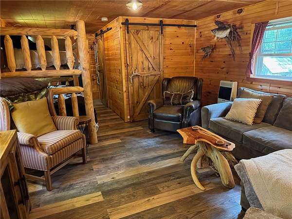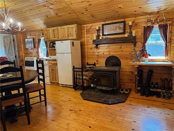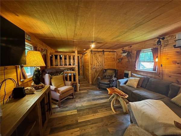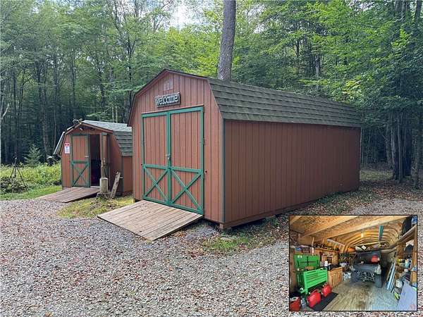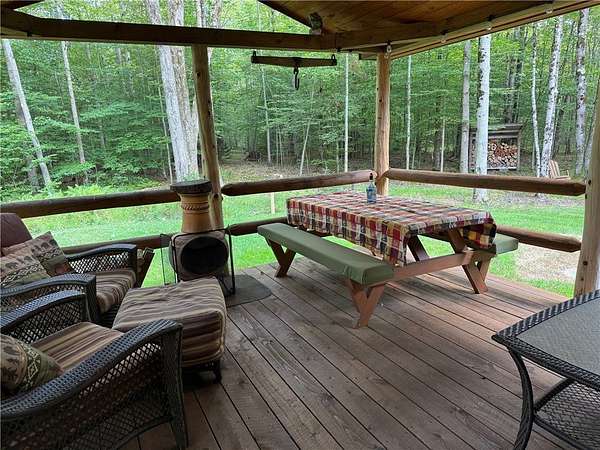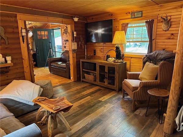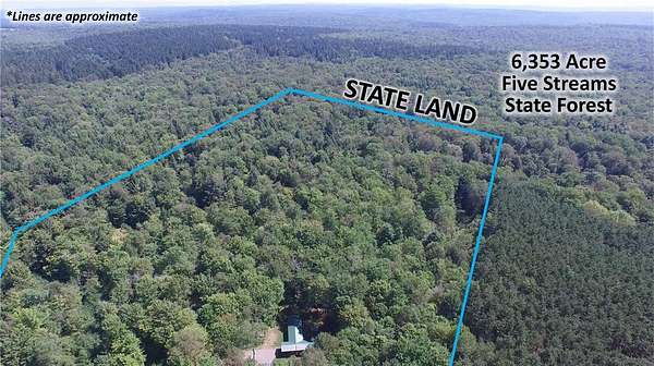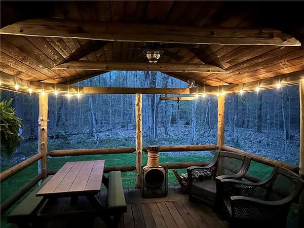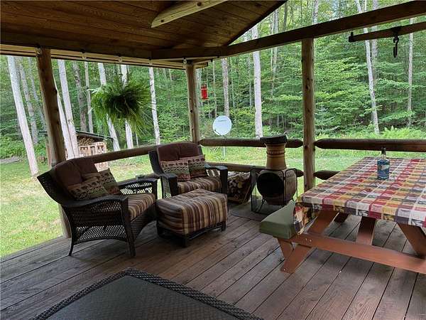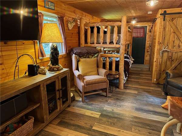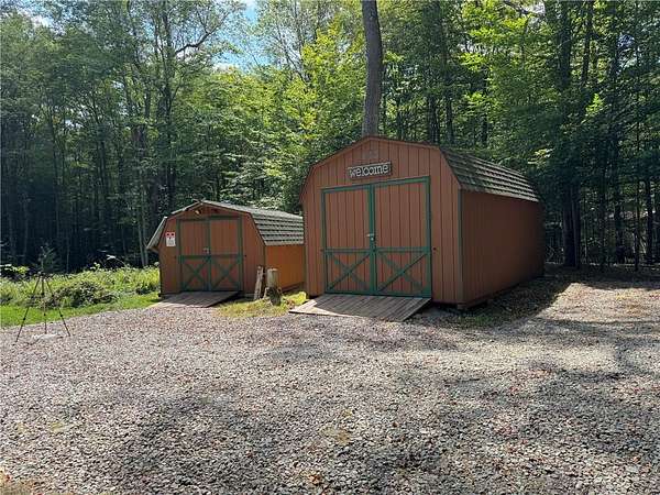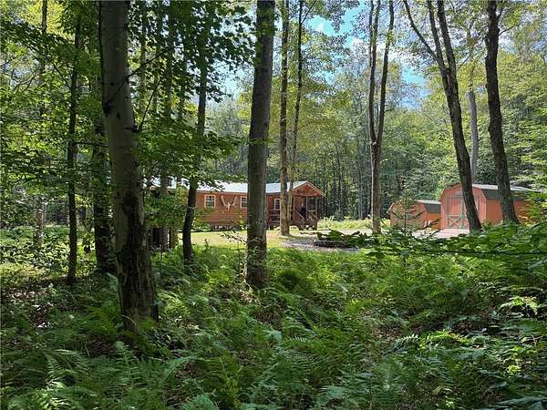 Welcome to Buck Tales Camp! Truly an escape, this picture-perfect getaway pulls you back to nature in wonderful comfort. Enter through the custom-designed iron gate and pass the ATV trailhead to the homesite. Listen to the leaves in the breeze, birdsong and crickets - you've left the world behind and found an oasis. This SOLAR POWER off-grid cabin is 4-season ready. Quality of craftmanship is evident throughout. Propane & wood heat, well insulated, proper full bathroom, nice primary bedroom, greatroom with kitchen/dining area PLUS a secondary bedroom/sleeping area with family room, utility closet, TV & internet hub. Natural wood throughout, lots of rustic chic touches to make this a turn-key vacation home. Perfect for AirBnB/VRBO! The newest addition to the cabin is the comfortable deck creating an outdoor living room. The overhead fan creates the perfect breeze to cool off on warm summer days. Cozy-up to the wood-burning chimnea and watch football on chilly fall evenings. Tell your Buck Tales around the large crackling firepit - the centerpiece for those big get-togethers. Utilize the 100 yard shooting range; hike or ride the atv trails to the state forest boundary. The Five Streams State Forest offers 6,353 acres of hiking, hunting, horseback riding, snow mobiling and adventure plus fresh water fishing nearby for water lovers. * 3D Tour Available * Schedule your private showing TODAY!
