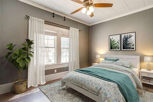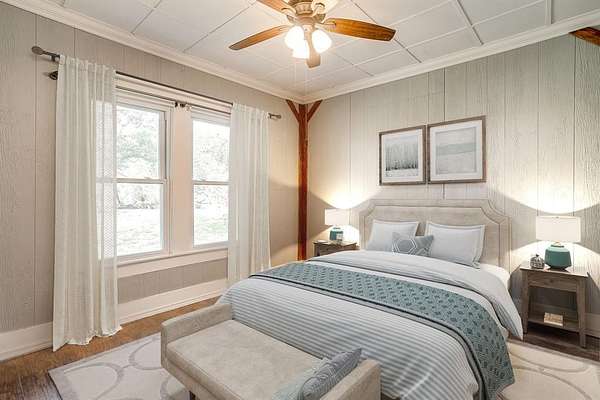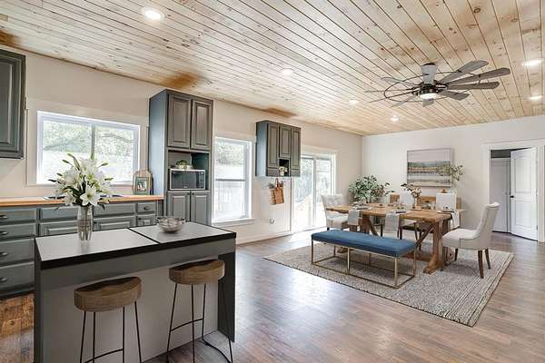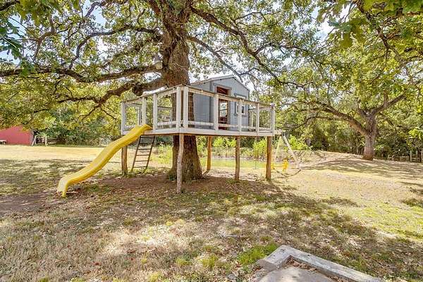 Nestled on 8.03 acres of AG Exempt land, this picturesque property is peaceful and beautiful. As you enter the property you will be captivated by the sight of mature oak trees that provide ample shade. Step inside the 4 bedroom and 2 bath home. This house has an open-concept that is flooded with natural light, showcasing a country style kitchen with an open floor plan. The wood accents on the ceiling are absolutely gorgeous. Windows have been updated. There is an addition that has endless possibilities of how you want to utilize the space, Living Room, Den, Game Room, etc. This room is approximately 533 Square Feet (26x21). The upstairs area could be an office or used for additional storage. The parameter of the property is fenced and cross-fenced making it ideal for housing & grazing farm animals. There is a barn, stock pond and small peach orchard on the property. This property also has a large chicken run for those looking to produce their own fresh eggs. There is a large covered back porch for entertaining. Do you need multi-generational living? Step inside the cozy 640 Sq Ft guest house. You will be greeted by an inviting open floor plan that maximizes every inch of space. This home offers 1 Bedroom, 1 Bath and utility room for a washer and dryer. The wood accents throughout make this home incredible.