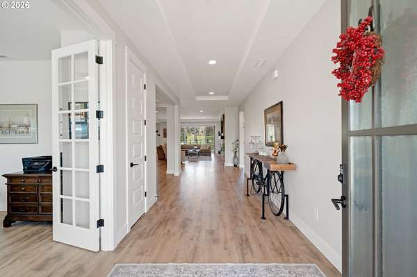 Tucked in a quiet cul-de-sac on two private acres, this Woodland retreat offers effortless, elevated living with a seamless great-room layout, formal dining, and a beautifully appointed kitchen with an expansive island, cozy nook, and walk-in pantry. The primary suite is a true escape, featuring a soaking tub, walk-in shower, spacious closet, and private patio, while wide hallways and doorways enhance the home's open, airy feel. Upstairs provides a versatile bonus space ideal for guests, a media room, or a refined home office. The grounds are equally impressive, showcasing newer exterior paint, a full sprinkler system for lush landscaping, a 30x30 half-court basketball area, and a tranquil bird sanctuary tucked into the corner of the property. A substantial 20x50 shop with epoxy flooring offers exceptional utility, complemented by a 3-car attached garage also finished with epoxy flooring and equipped with an EV charger. The hot tub area is thoughtfully designed with both 110 and 220 hookups. With access to a nearby private boat launch on the Lewis River leading to the Columbia River, this property delivers a rare blend of privacy, recreation, and elevated Northwest living. Smart layout, smart home features, peaceful community, and just the right amount of space to make every day feel like a getaway.