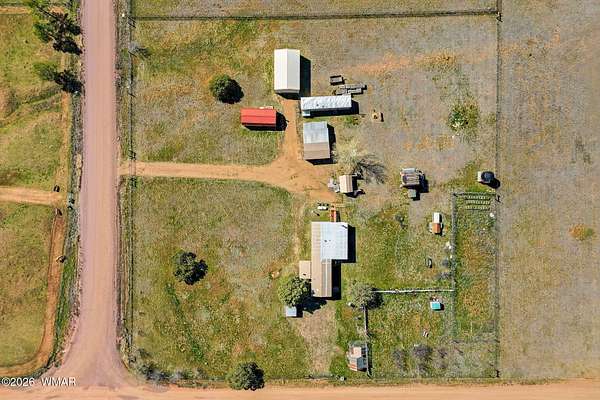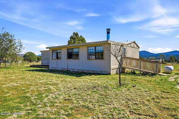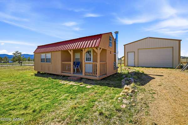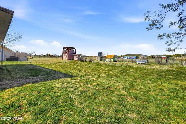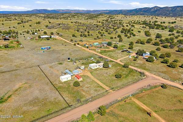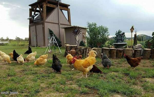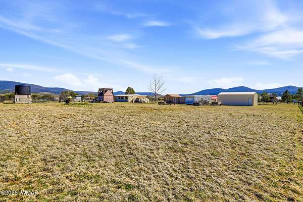 A ready-made homestead surrounded by sweeping mountain views and wide-open skies, and it comes loaded with the infrastructure most buyers spend years building. The 2.2-acre parcel is fully fenced with steel posts and chain link, features two granite rock driveways with swing gates, and is serviced by a private well. The structures on the property are what truly set this listing apart: a charming cabin with loft and wood-burning stove, a massive garage workshop, a dedicated Tuff Shed library/studio, an extra-large walk in pantry located off the side of the house, a utility shed, a Container Connex, a water tower with tank, two chicken coops, and two garden enclosures, everything you need to hit the ground running. The 3-bedroom, 2-bath manufactured home with an added living room provides comfortable, functional living while you settle in and make the land your own. Whether you're looking to homestead, hobby farm, or simply escape the city for wide-open Arizona high country, this property delivers the infrastructure, the views, and the space to do it right.