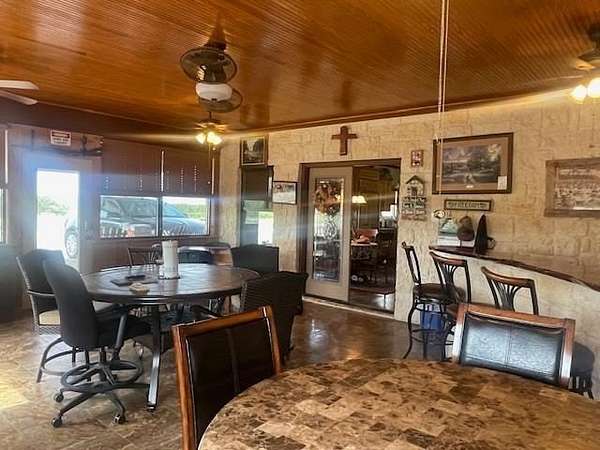 Welcome home to this extremely unique, custom built and multipurposeful property!! Beautifully located on 3.47 acres of luscious hill country with an immense array of improvements. The main home has an open floorplan for family time or entertaining with one large Master Bedroom and Bath. Enjoy a cozy fire in the Austin stone den with a custom-made mesquite topped wet bar. The kitchen boasts top of the line appliances and solid surface countertops. Take yourself through the breezeway to the Bunk House and Barndominium. The bunkhouse has a large bathroom and an efficiency kitchen. The Barndominium features several roll top doors, commercial sized kitchen and an upstairs office. The property is beautifully landscaped lined with groves of live oaks with low maintenance rock beds and native rock walls. Located less than 4 miles from Sonora, you can have the best of two worlds, County living close to town!! There are endless possibilities for additional income from this property as well.