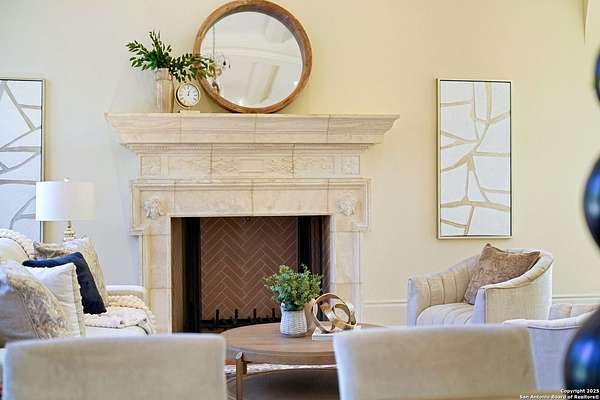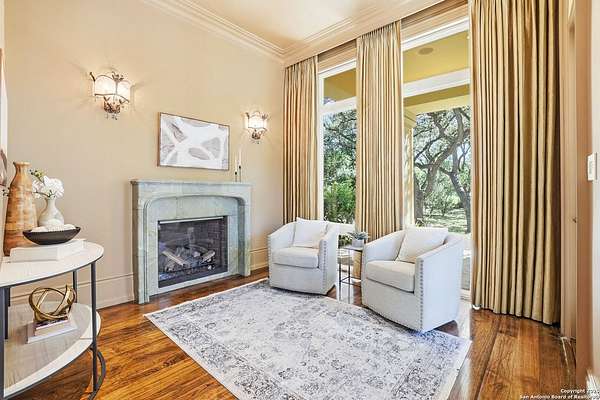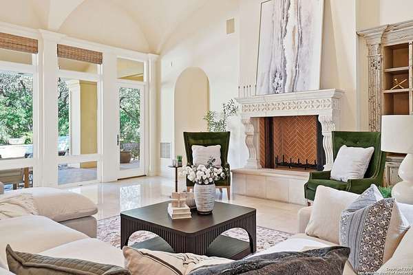 Nestled on over three and a half acres in prestigious Hill Country Village, this sprawling estate is more than a home-it is a work of art. The custom-built Image Homes creation offers 11,896 square feet of unparalleled luxury, with every detail meticulously crafted. Step inside to discover a world of refinement, from the exquisite marble floors and smooth venetian plaster to the warmth of five unique fireplaces. The grand primary suite is a true sanctuary, featuring floor-to-ceiling windows with and a serene sitting room that opens to a private veranda overlooking the resort-style pool. The gourmet kitchen is equipped with top-of-the-line Wolf and Miele appliances. For entertainment, the home is a playground with a dedicated media room, a music room, a game room, and a climate-controlled wine cellar. Smart home technology seamlessly controls lighting, security and climate, while an elegant elevator provides effortless access to the secondary primary suite of this extraordinary residence.